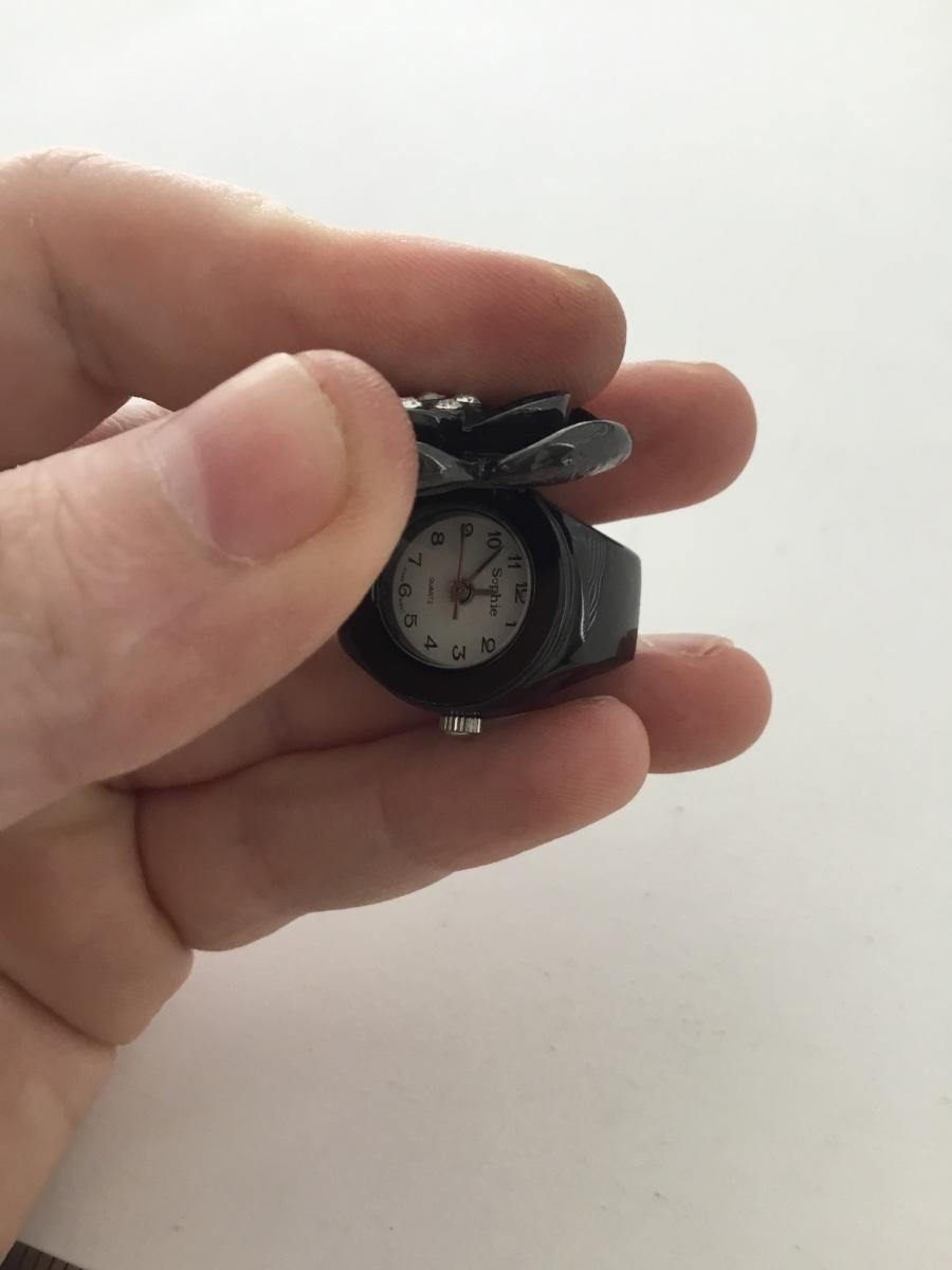 Sophie marked black floral ring watch stretchy adjustable