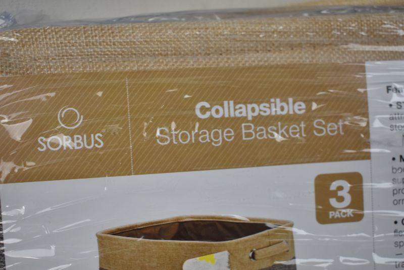 Sorbus Collapsible Storage Basket Set of 3 15"x10.75"x9.5", $21 Retail - New