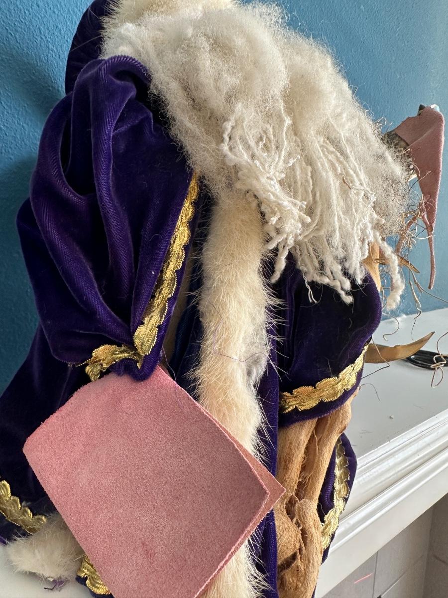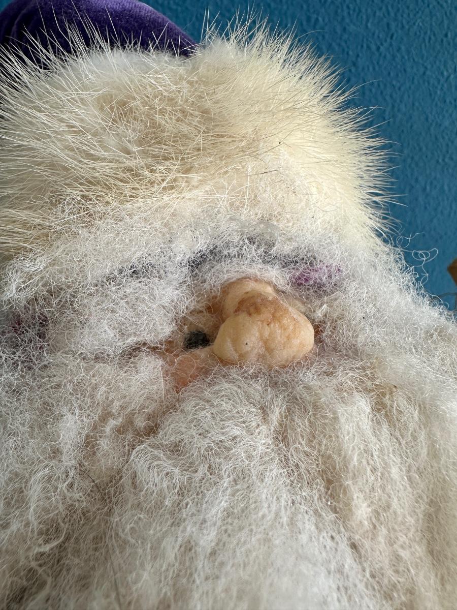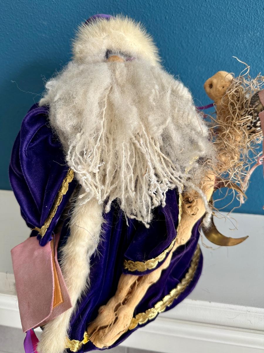 Magic happens with this Sorcerer Santa by Apple Whimseys. Robe is velvet and real fur used on robe and hat.