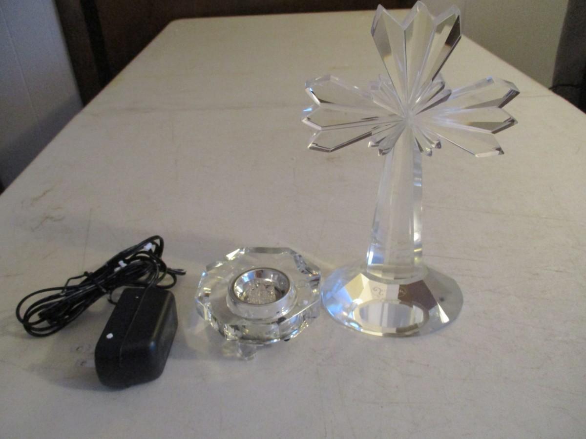 Sorelle Crystal Cross Figurine Hand Crafted Crystal Light Illumination Display Stand