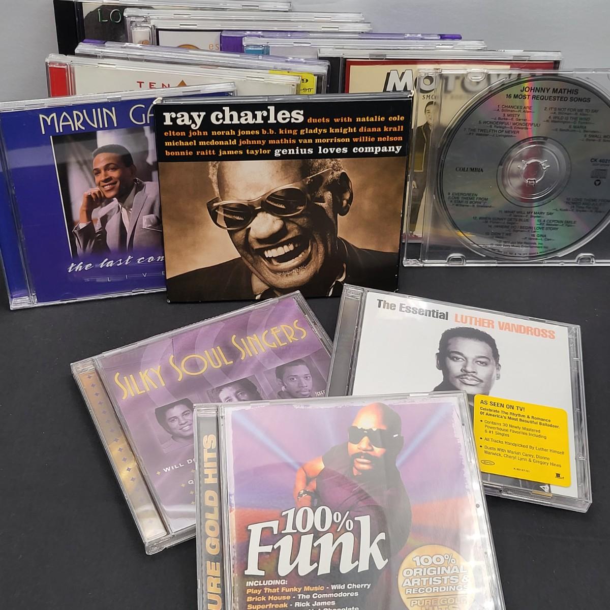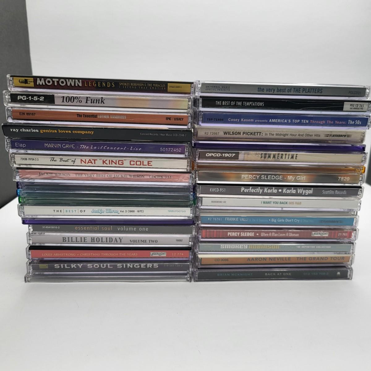 Over 30 various artists, includes Billy Holiday, Nat King Cole, Marvin Gaye, The Temptations, Smokey Robinson, Aaron Neville, Mixed Artist Compliation CD'S and more.