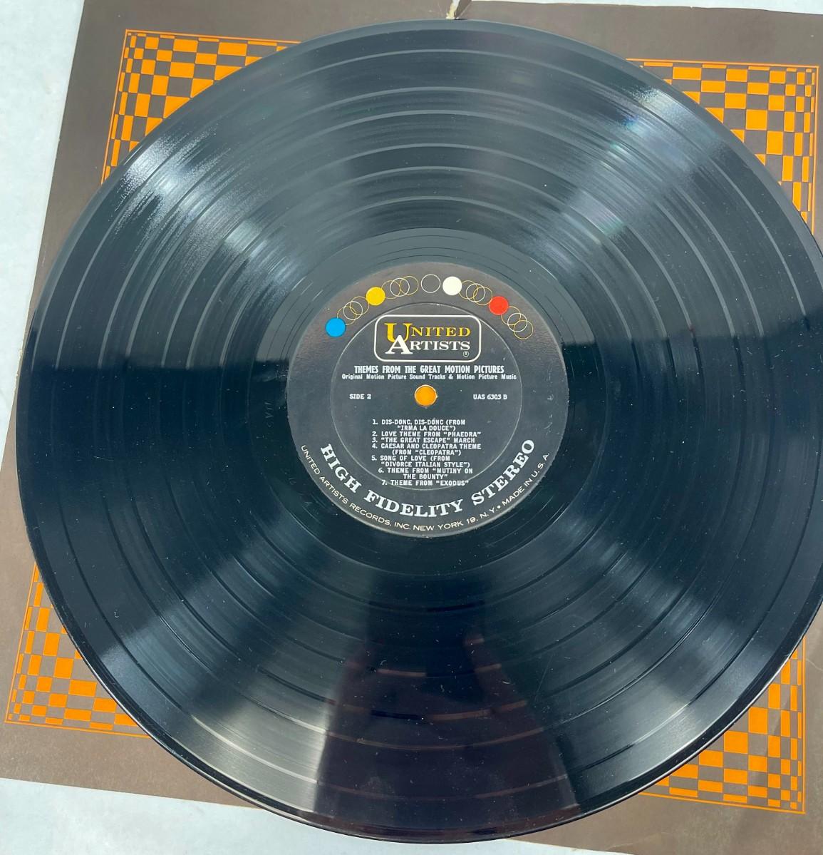 Movie soundtrack and music: from movies like Cleopatra, The Great escape, Mutiny on the Bounty, The Apartment, Lawrence of Arabia, and others. In Very good condition.