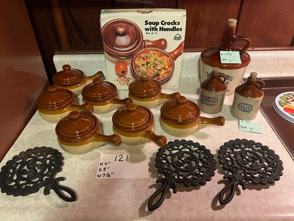 Soup Crocks, Jack Daniels, and trivets