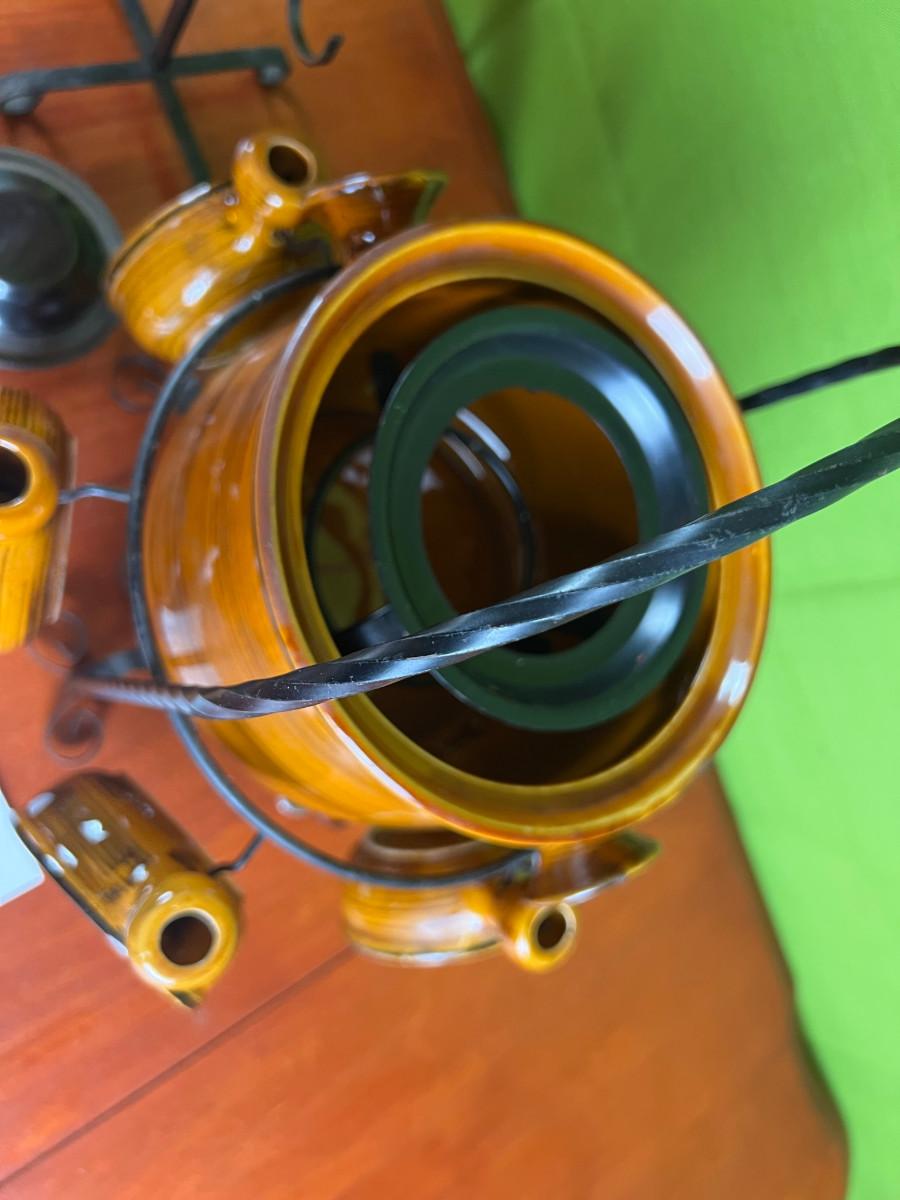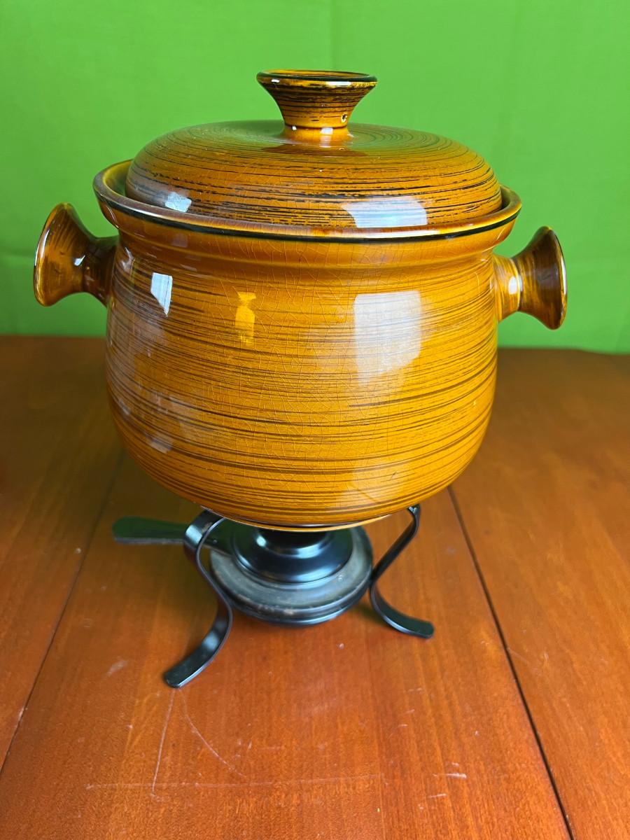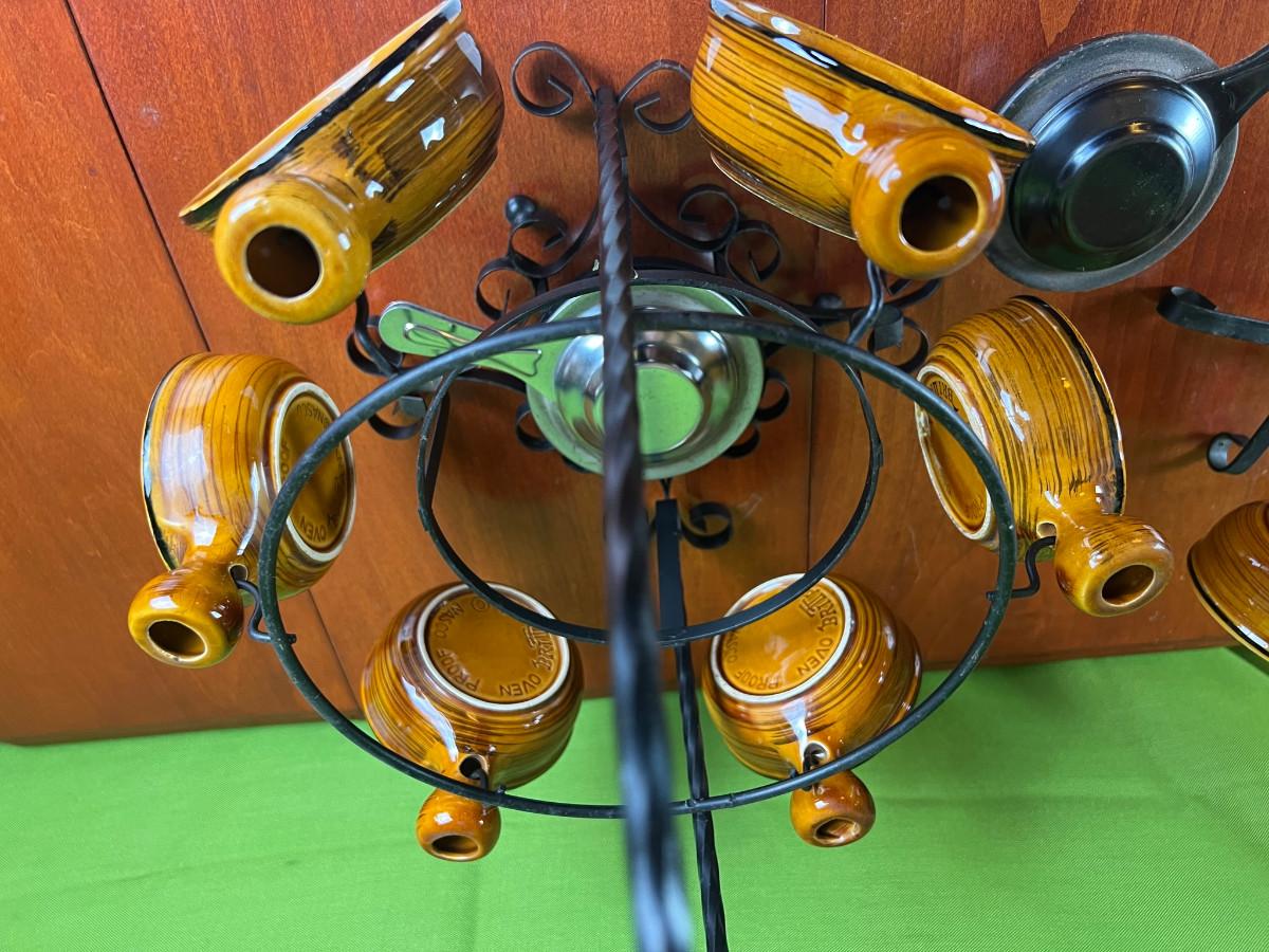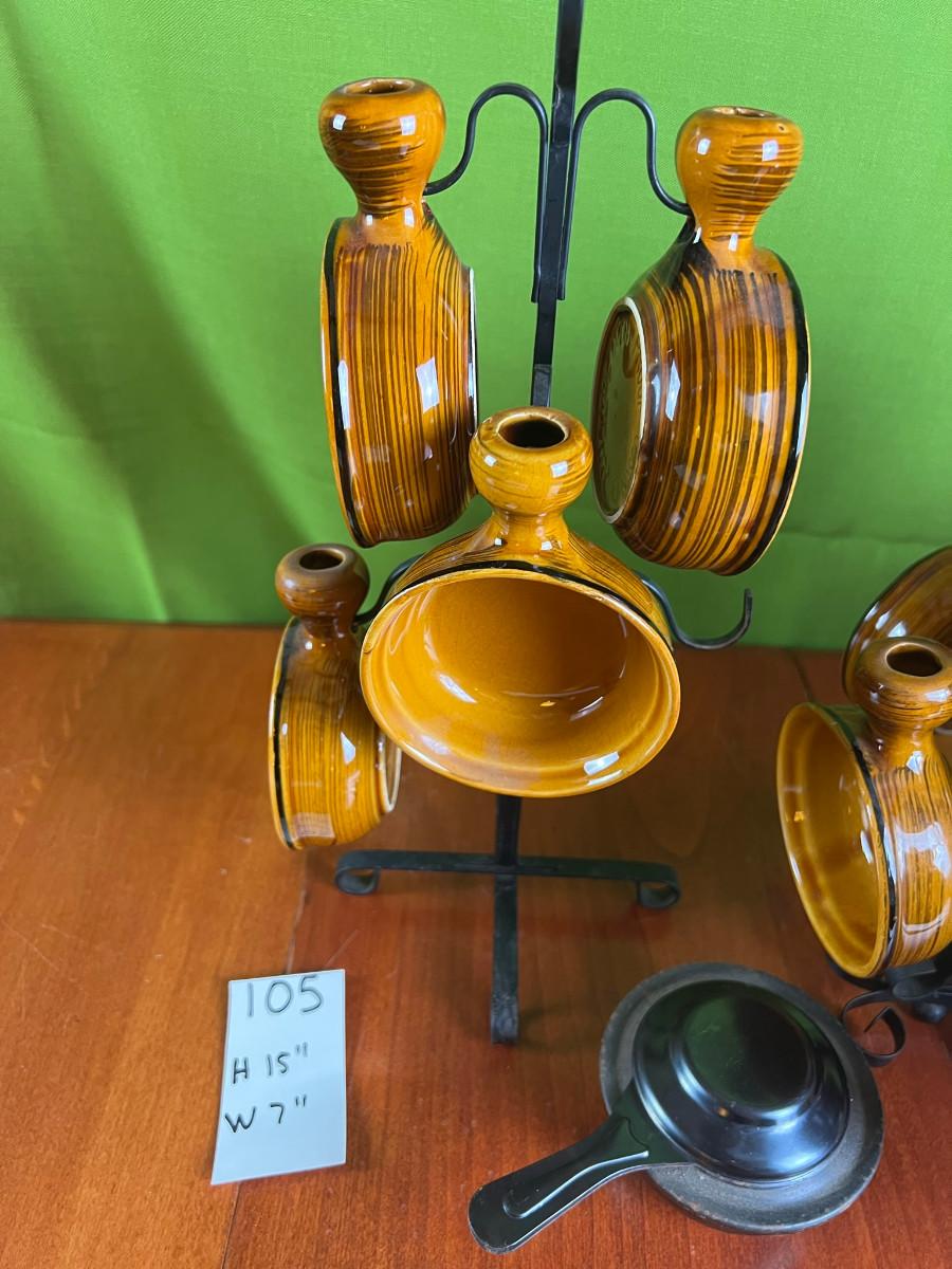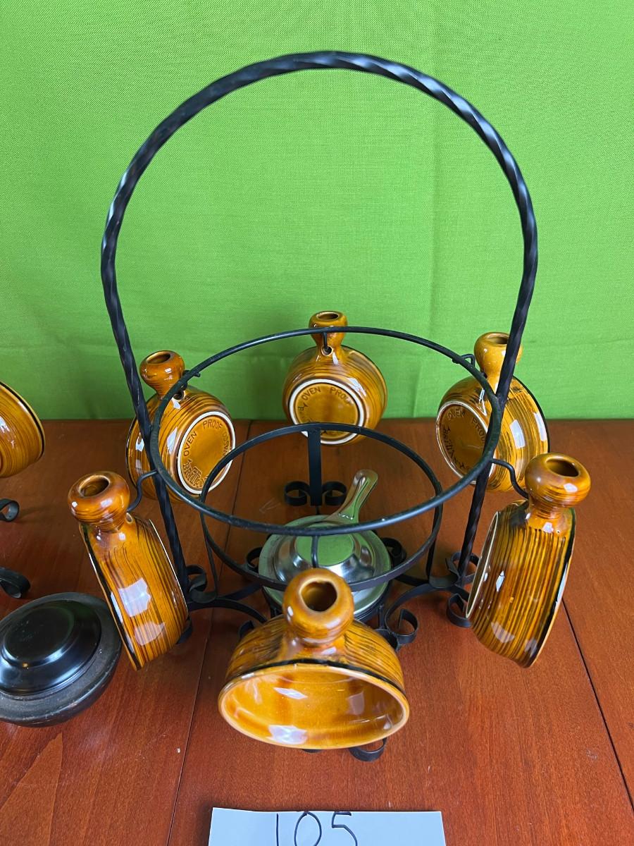 Brittany oven-proof NASCO 1 pot with lid, 10 bowls, 2 racks (1 bowl has a chip) extra rack with bowls 15" x 7"
