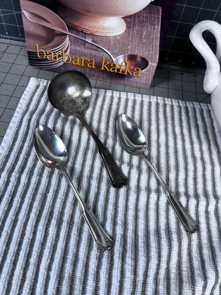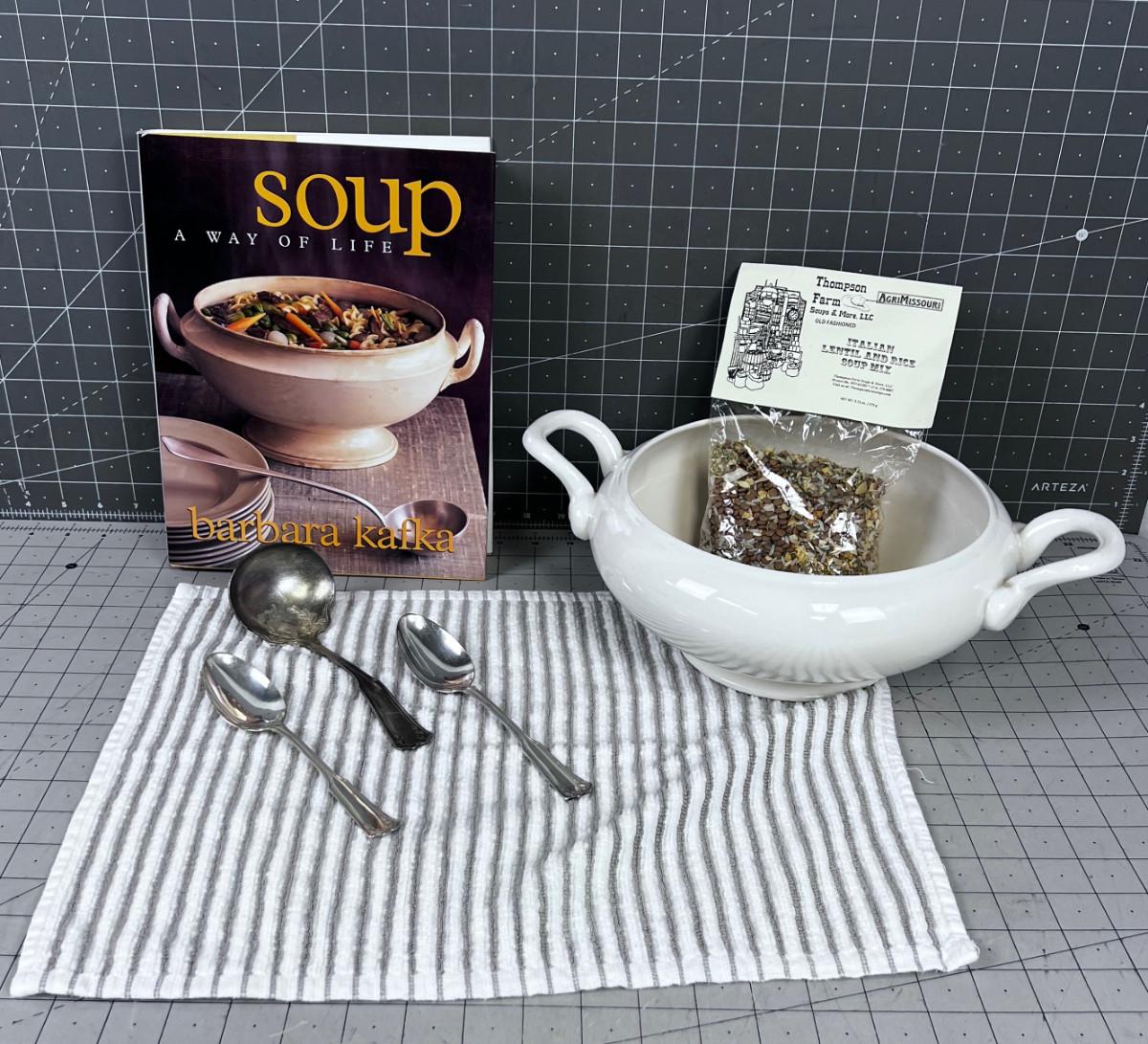 SOUPS ON! Book, Tureen (Maybe Planter) Silver Plated Serving Spoon ETC.