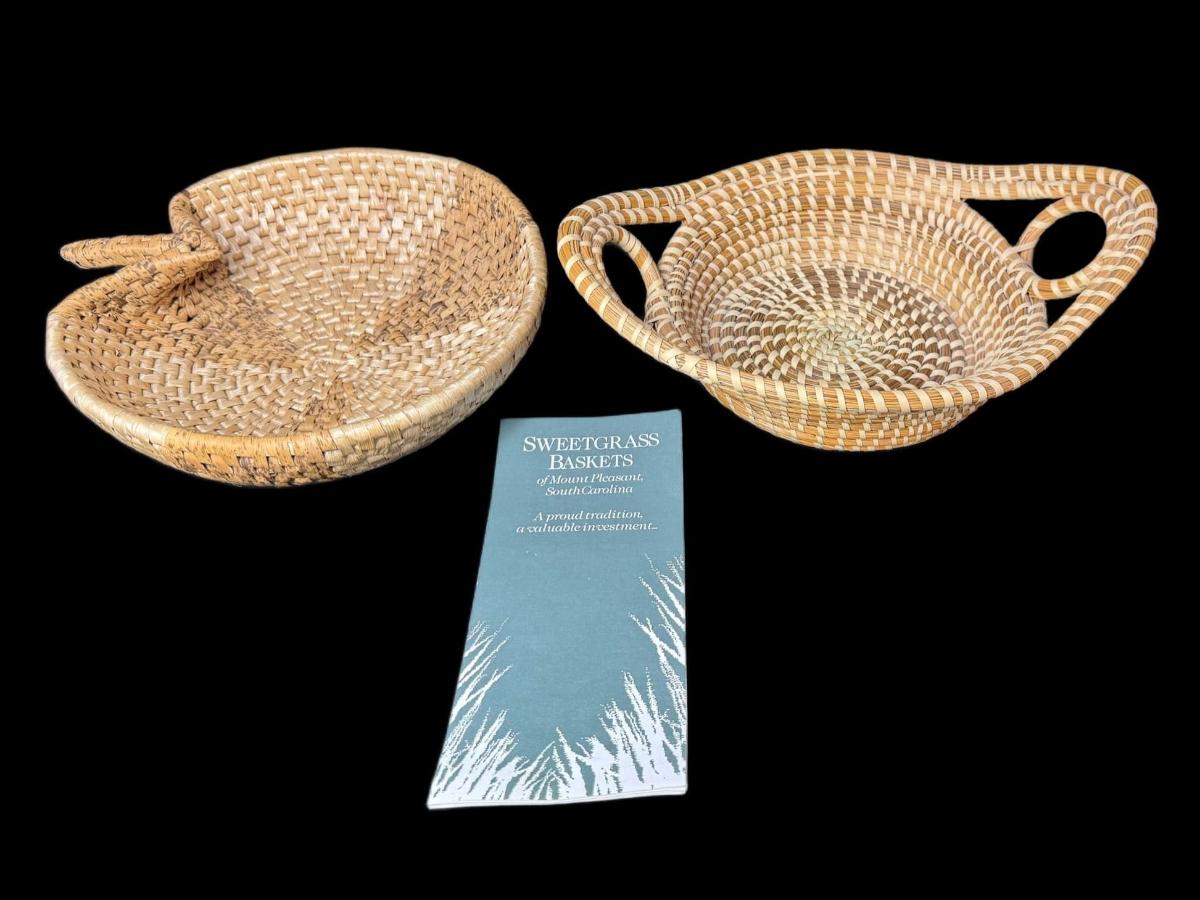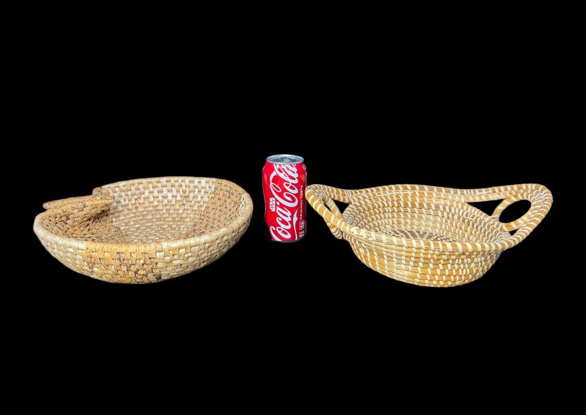 Includes one handled basket, and one apple shaped basket. Measurement of longest: 12.5”. [CS]
