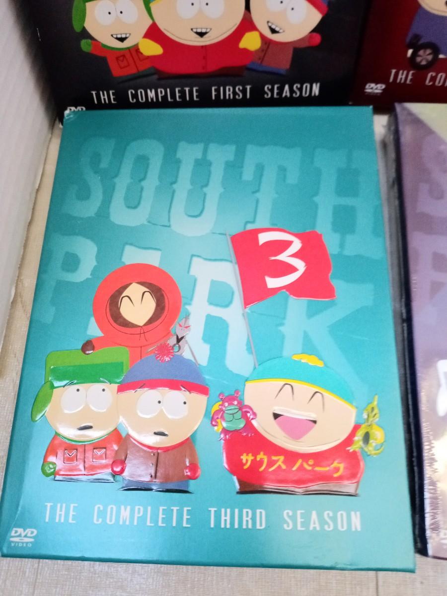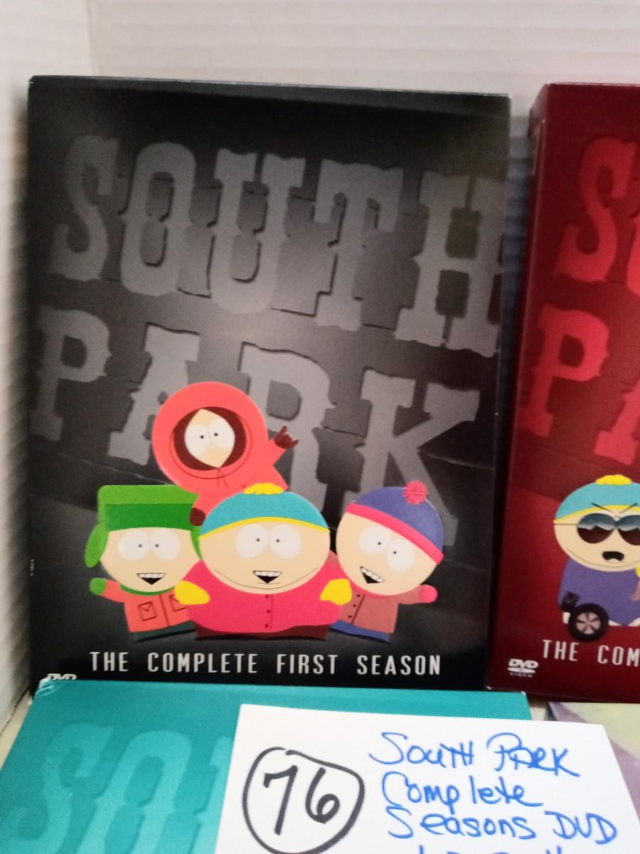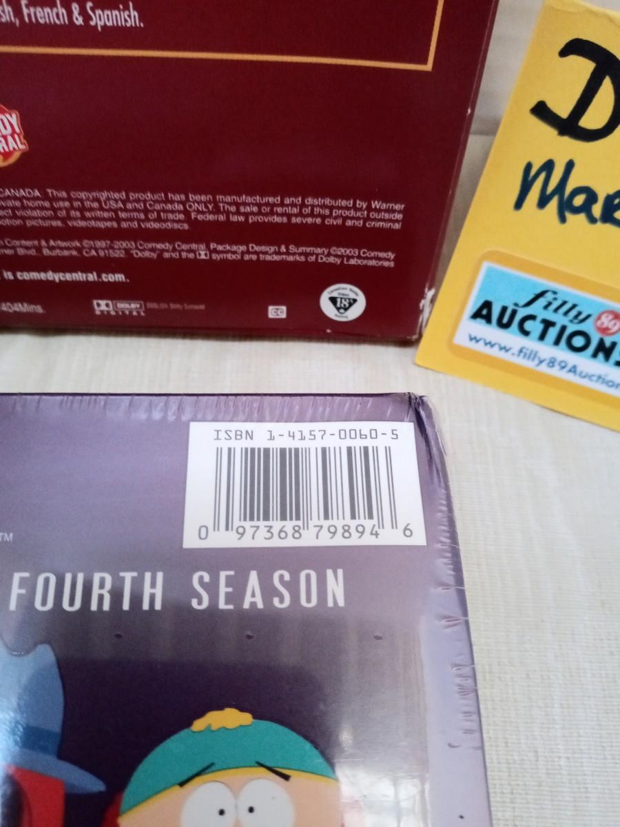 South Park TV Series with Complete DVD Box sets for Seasons First, Second, Third & Fourth. Note: 4-th Season is SEALED. Very Good Condition. See PHOTOS.