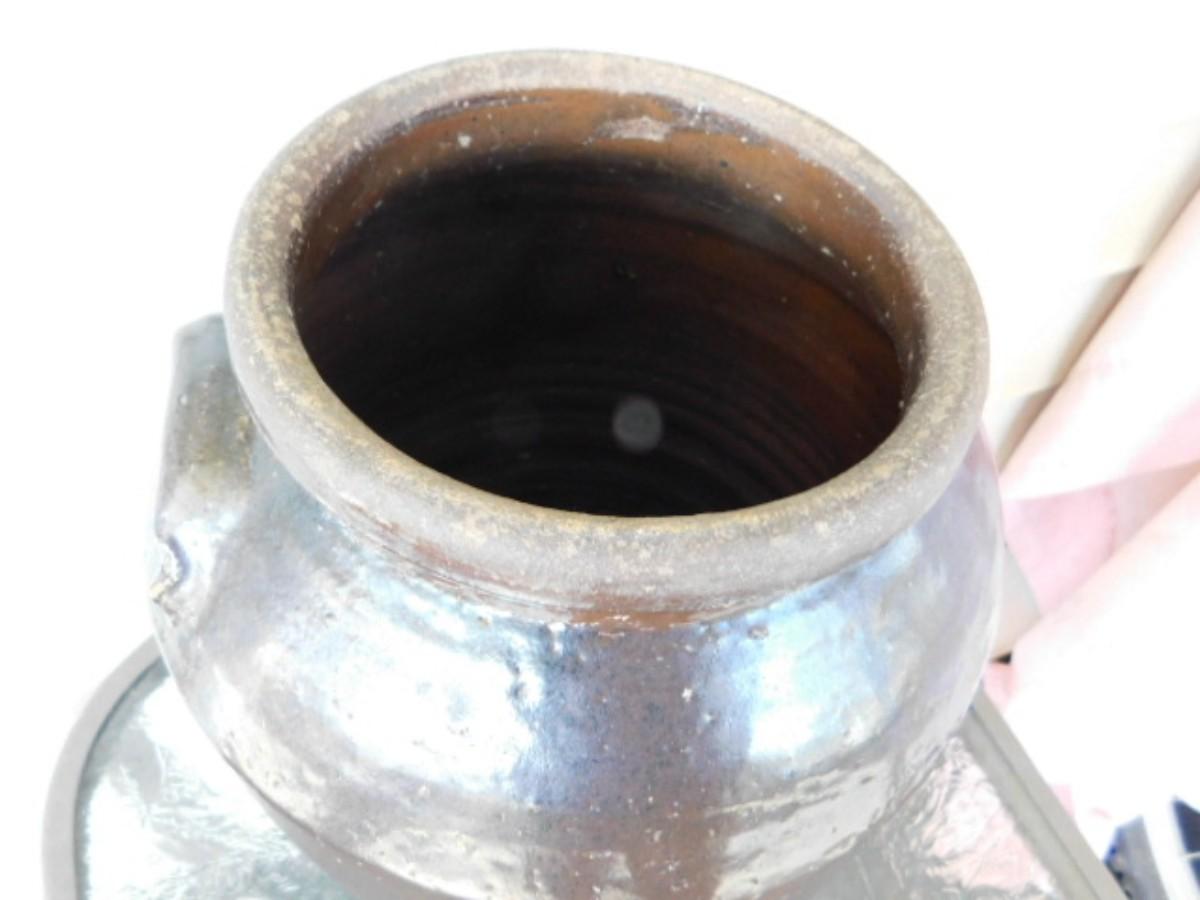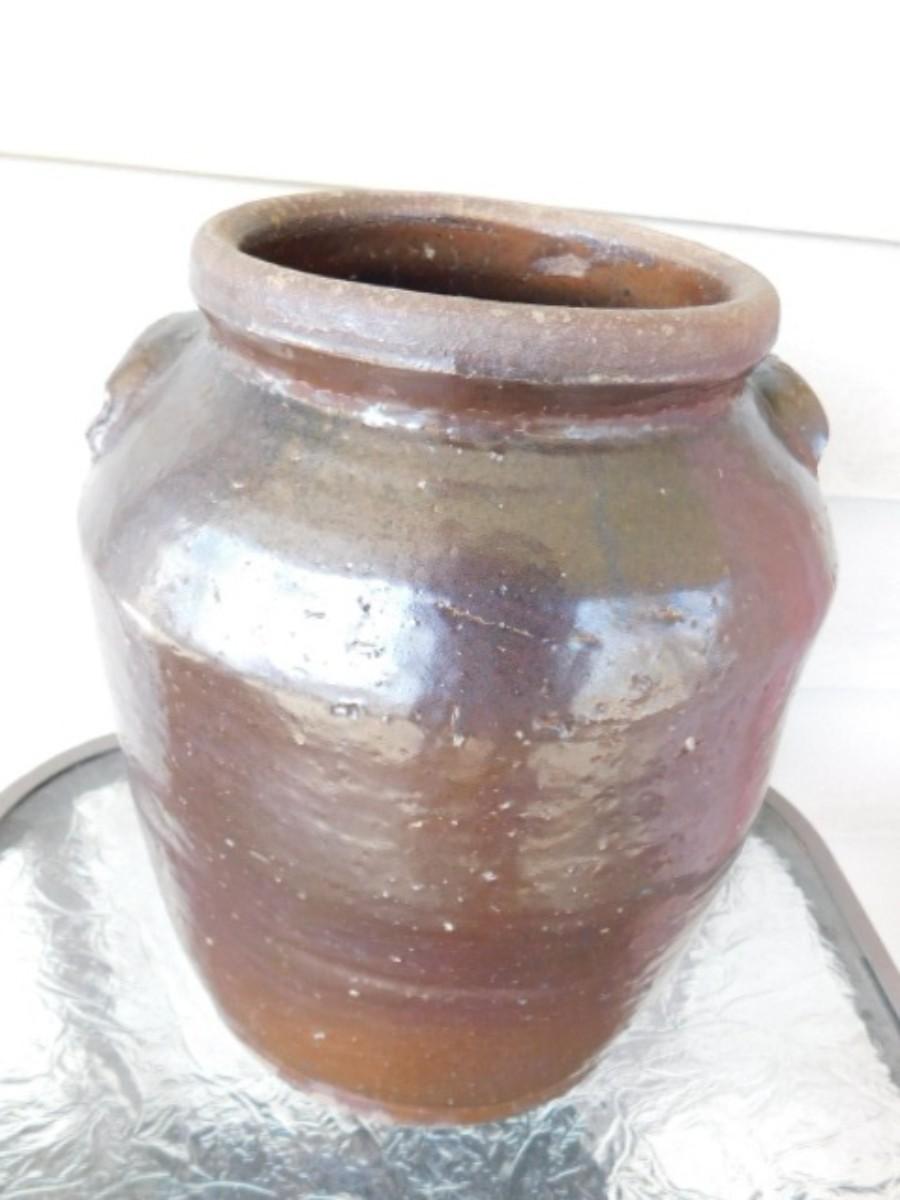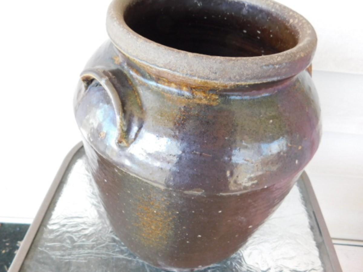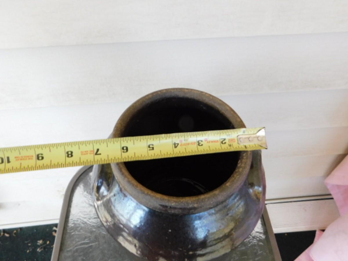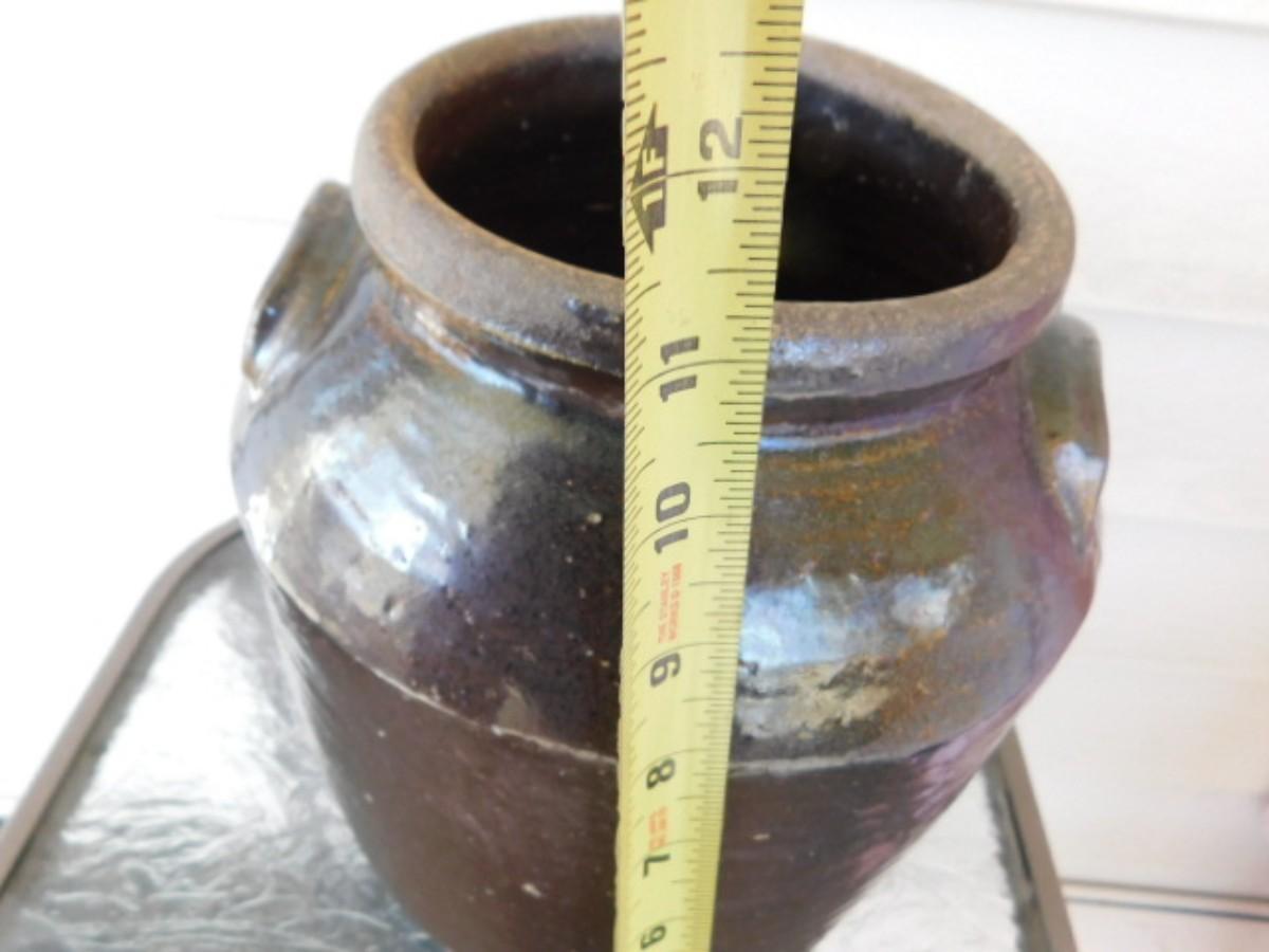 Southern Antique Hand Thrown 2 Gallon Pottery Crock with Ear Handles and Flared Collar Mouth Alkaline Glaze
