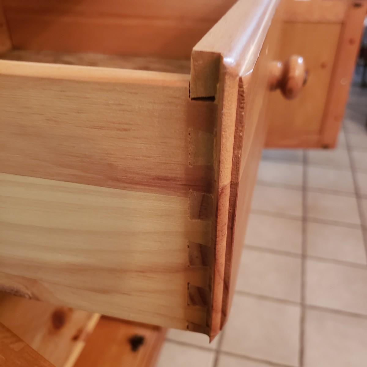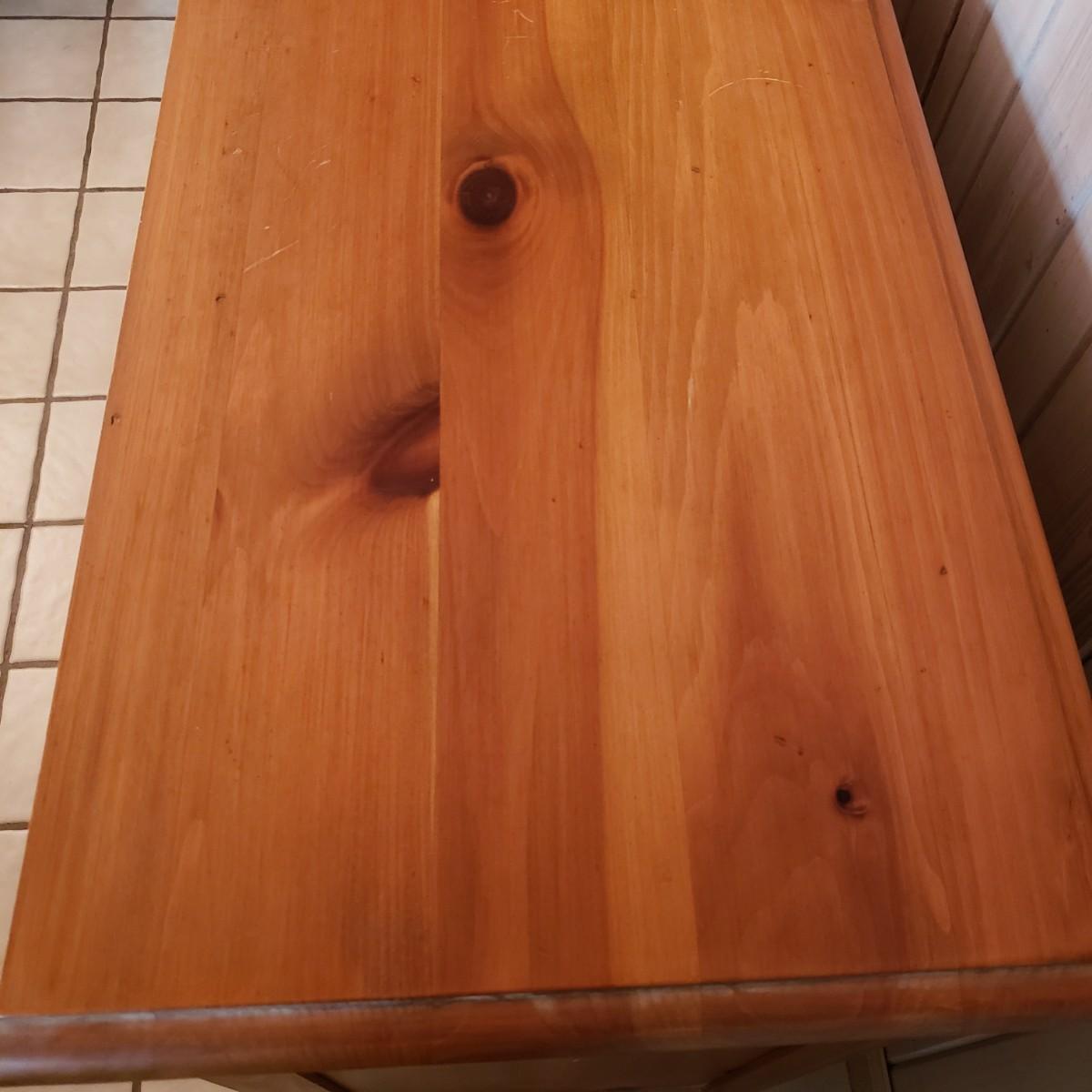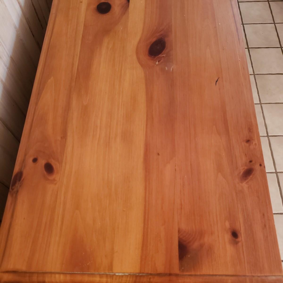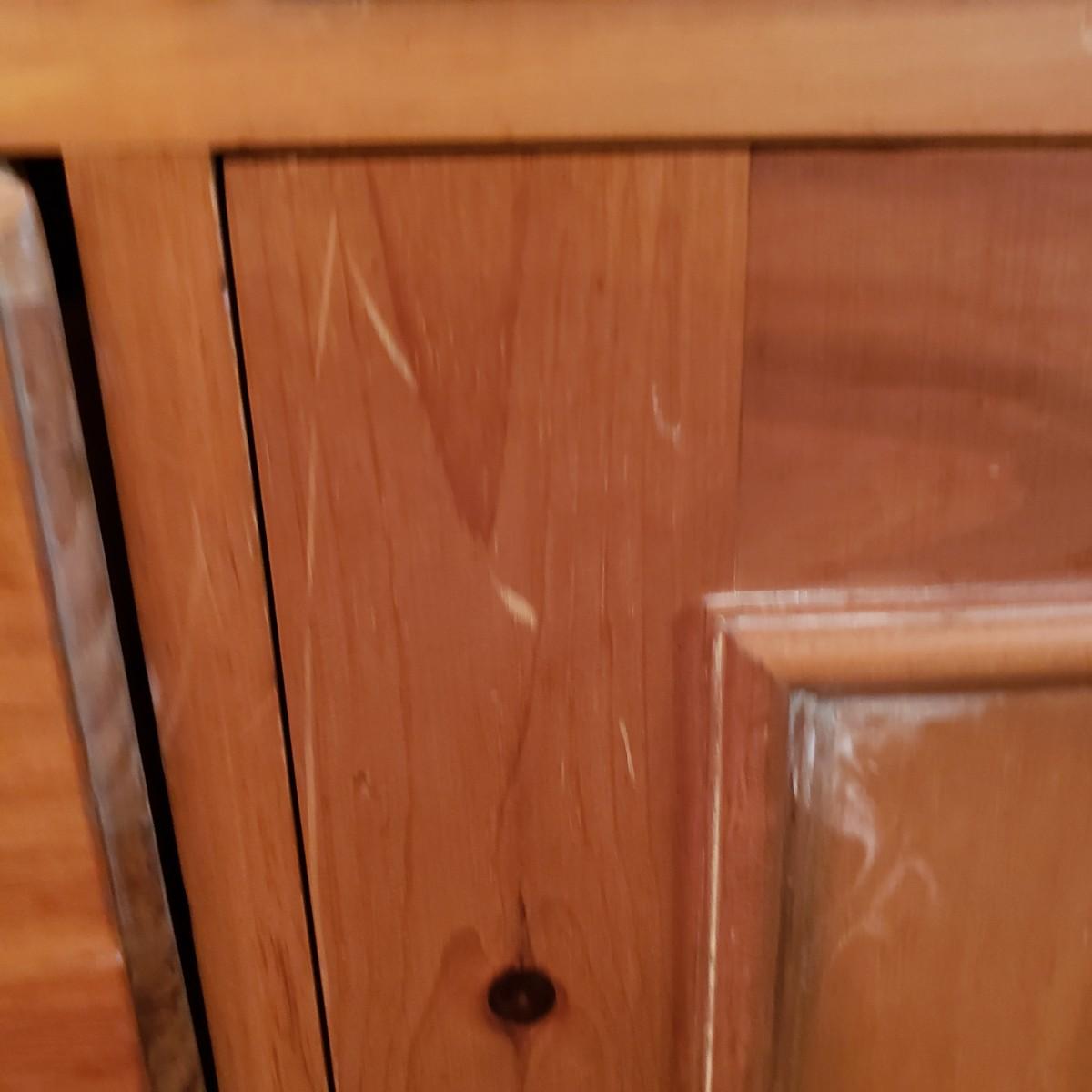 This is a Southern Furniture solid wood buffet from Elizabethtown, North Carolina. The buffet has six drawers and two cabinets. This piece measures 18" x 60" x 36"H. There are some scratches on the top and drawers, see pictures.