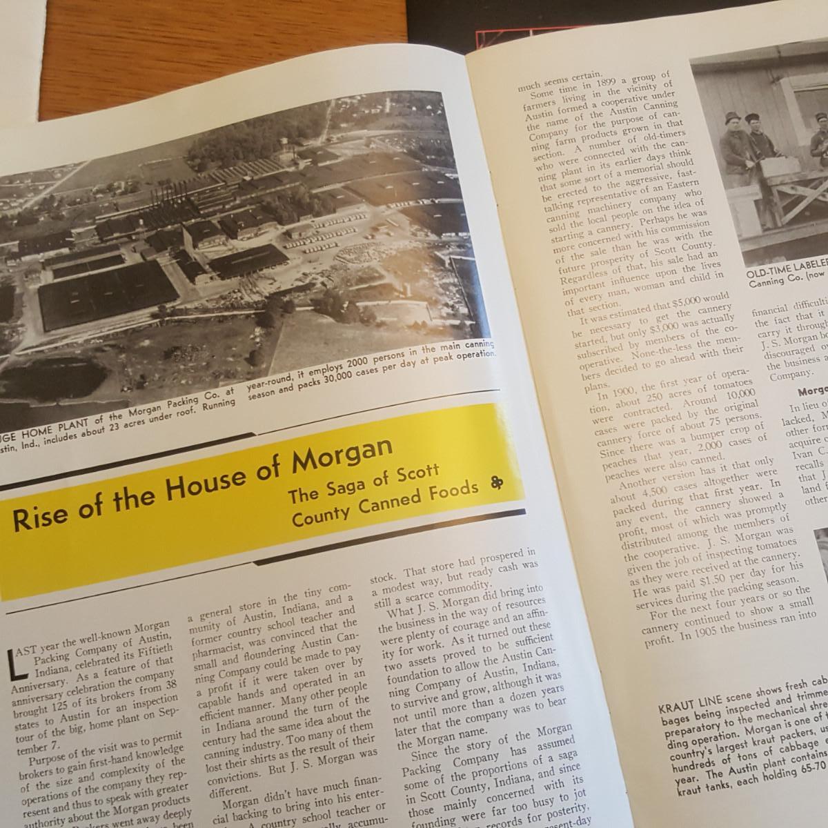 This auction lot is for 3 nice pieces of Southern Indiana Ephemera Booklets. Two of the booklets highlight the Morgan Packing Company in Austin, IN - of which one is dated 1952 and the third item is a many pictured booklet that tells the story of the St. Clair Glass Company of Elwood, IN. Nice collection of business history.