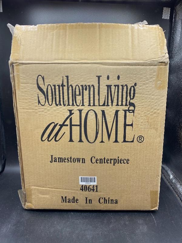 New in the box!! Southern Living at Home Jamestown Centerpiece. Looks like a square metal basket with a glass bottom piece. Large, about 12" square.