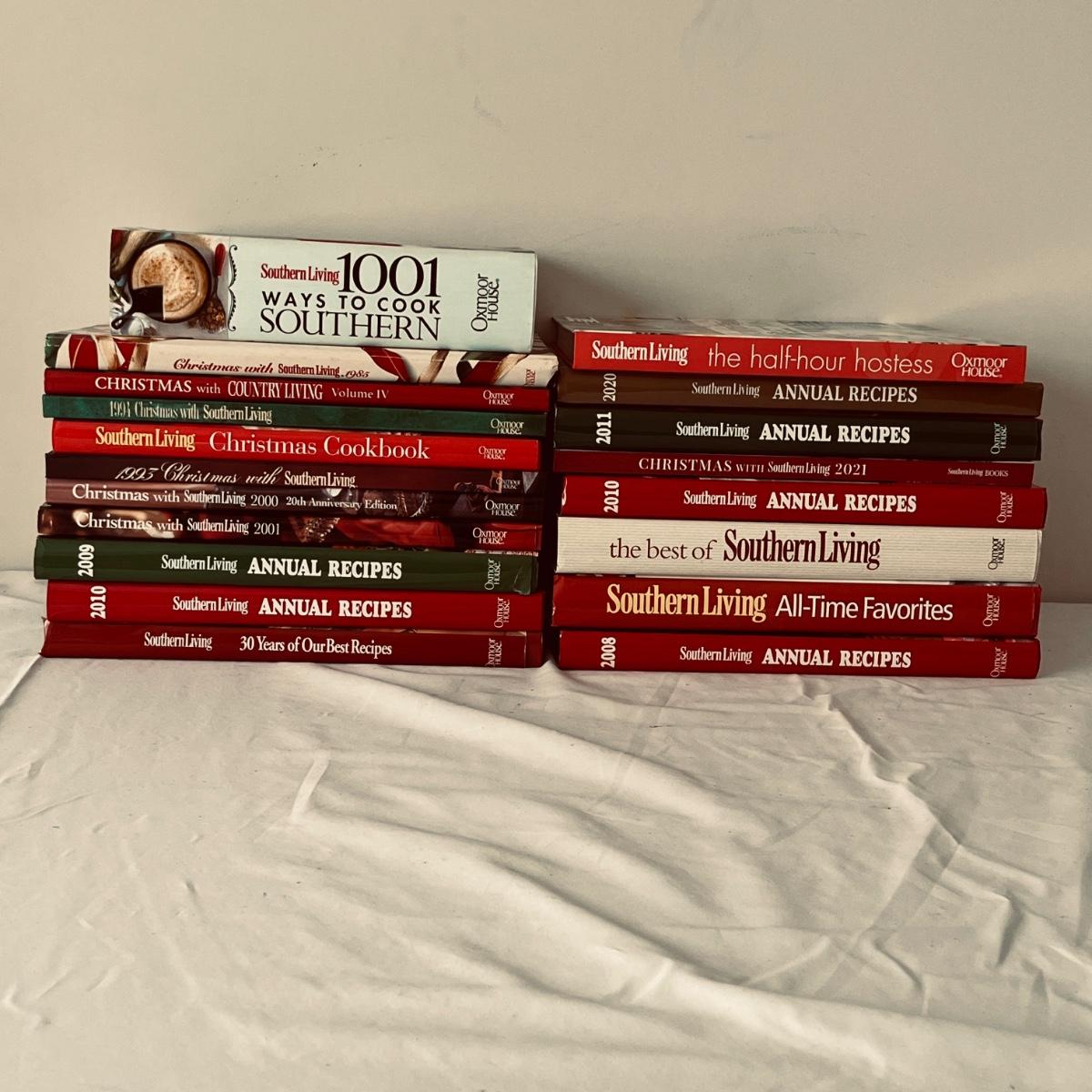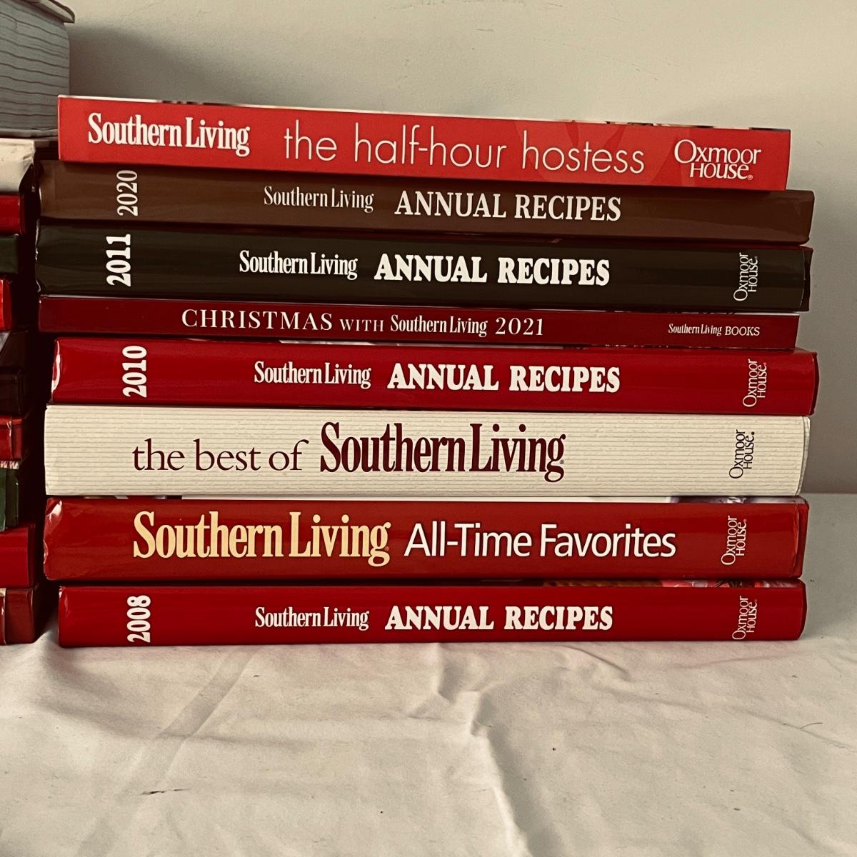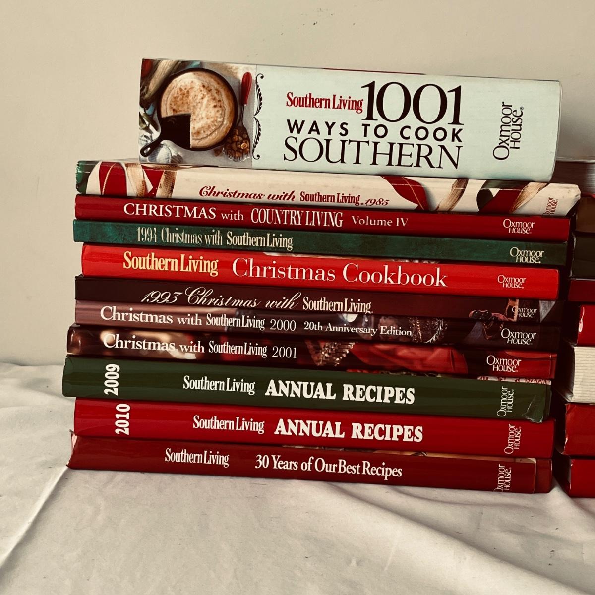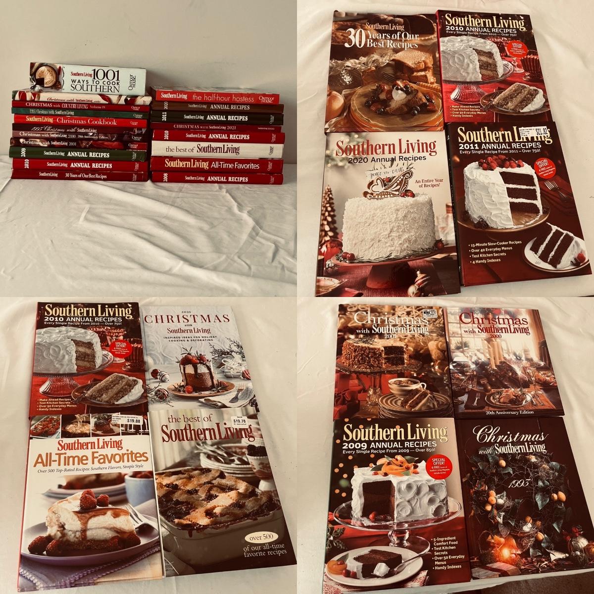 Lot includes over 15 Southern Living Cookbooks, most are Christmas themed. Largest book measures 8.5” x 11.5”H.