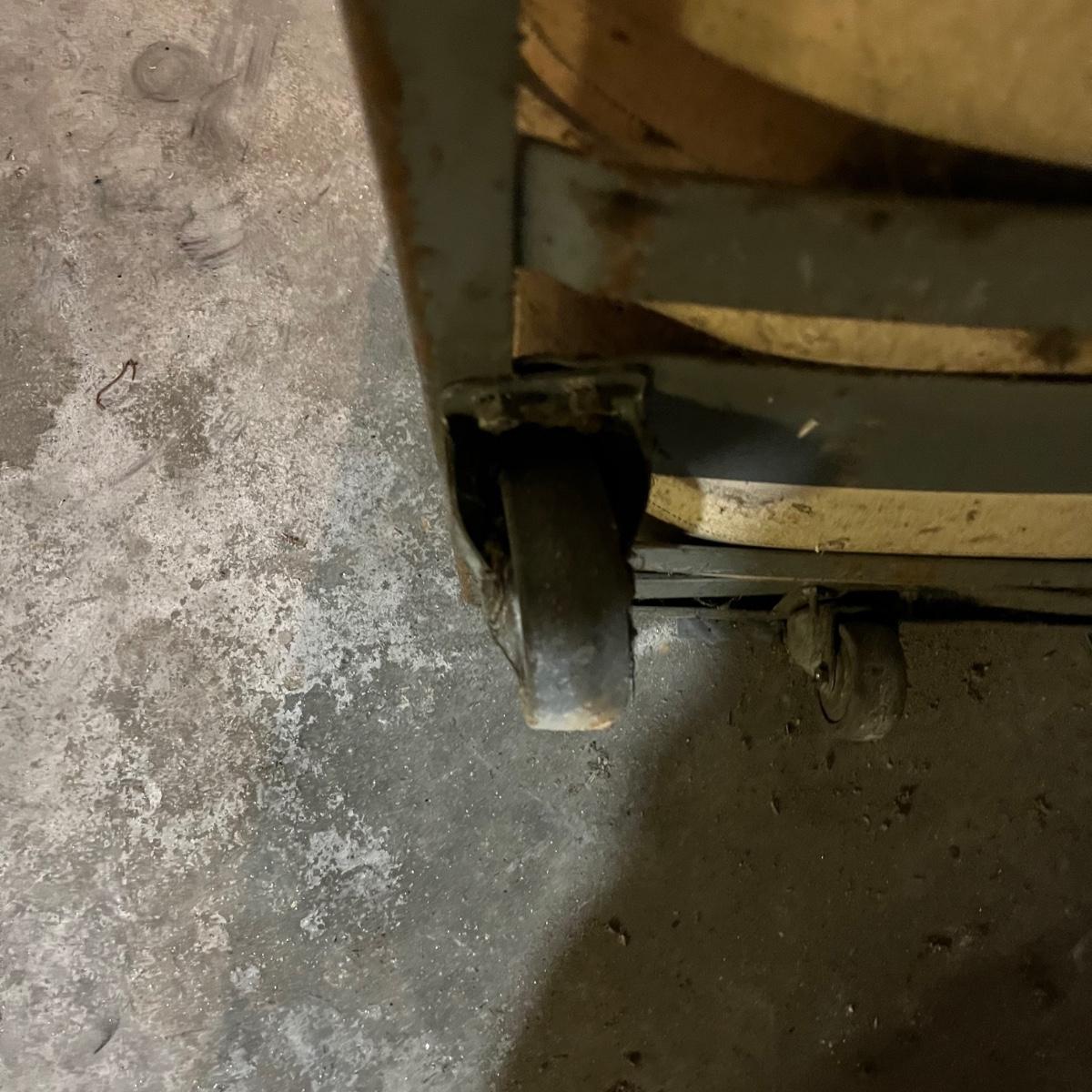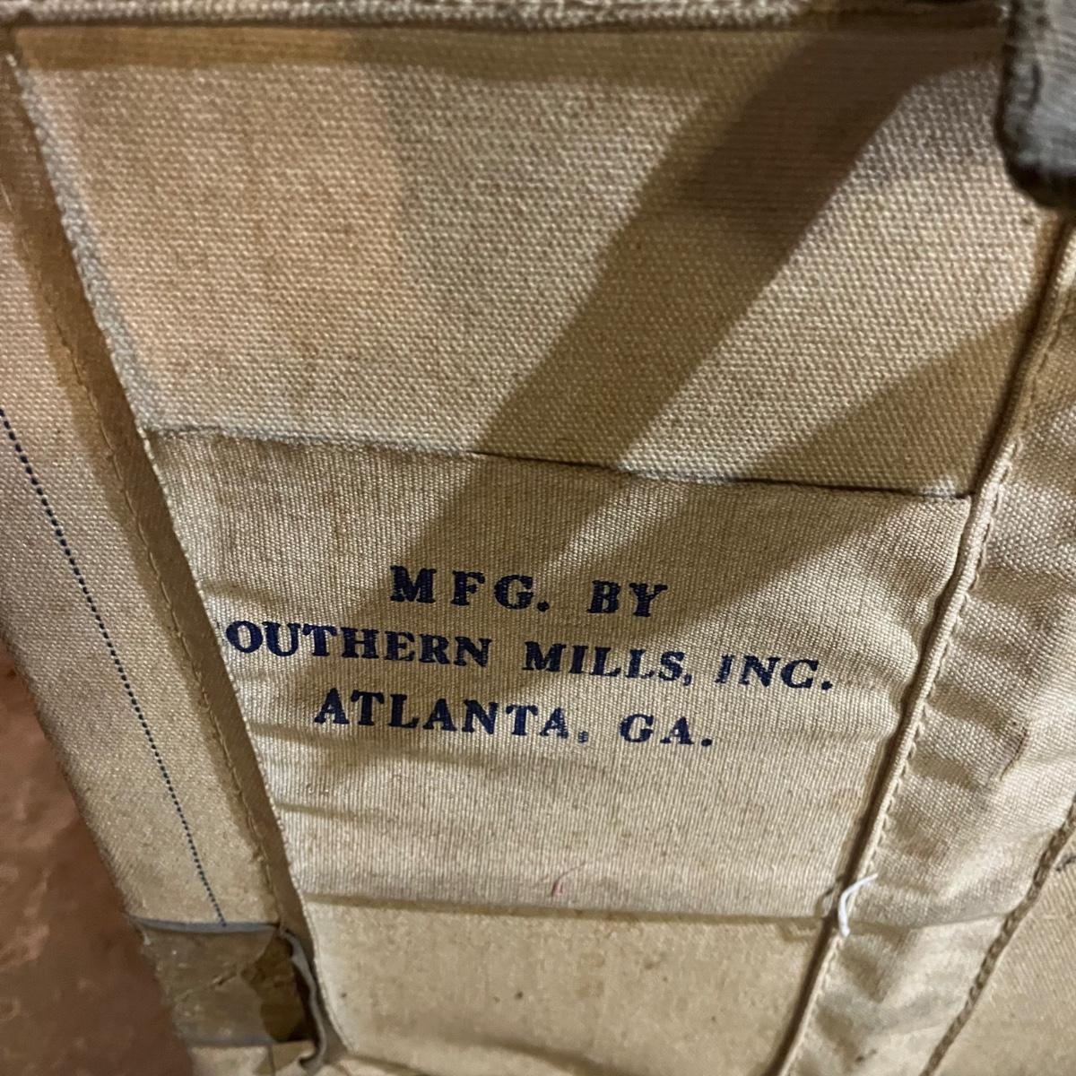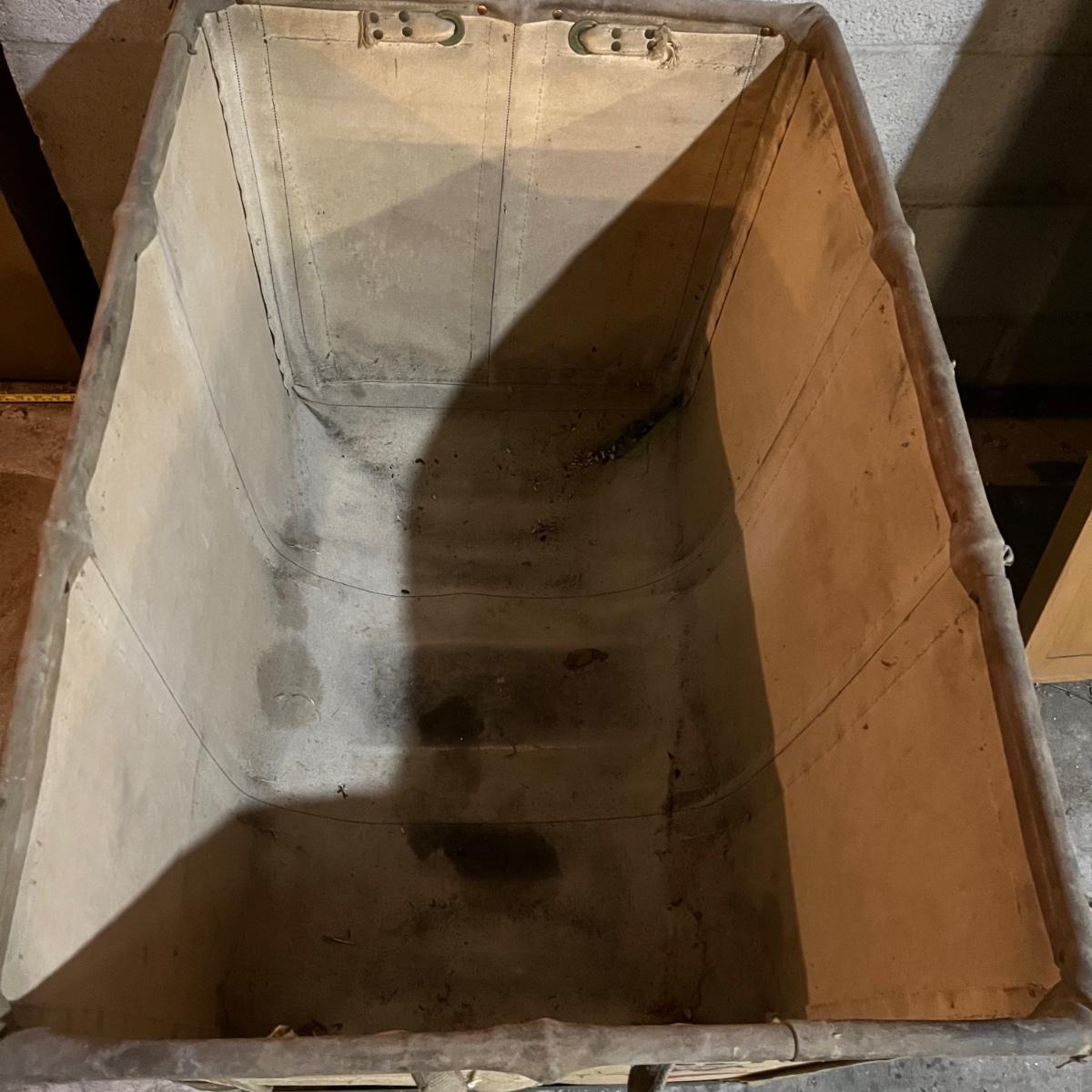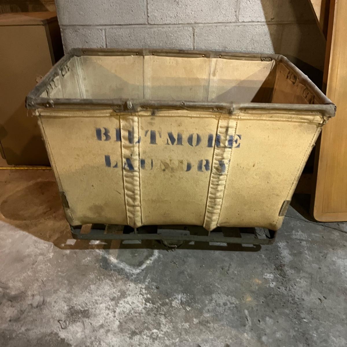 Lot includes a heavy duty Southern Mills metal and canvas laundry cart. Cart is dirty and middle wheels are bent, but it still rolls easy. Cart measures 23” x 35” x 27”.
