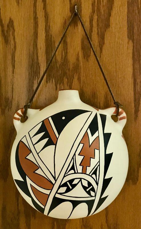 Southern Pueblo Pottery Ceramic Canteen With Leather Strap