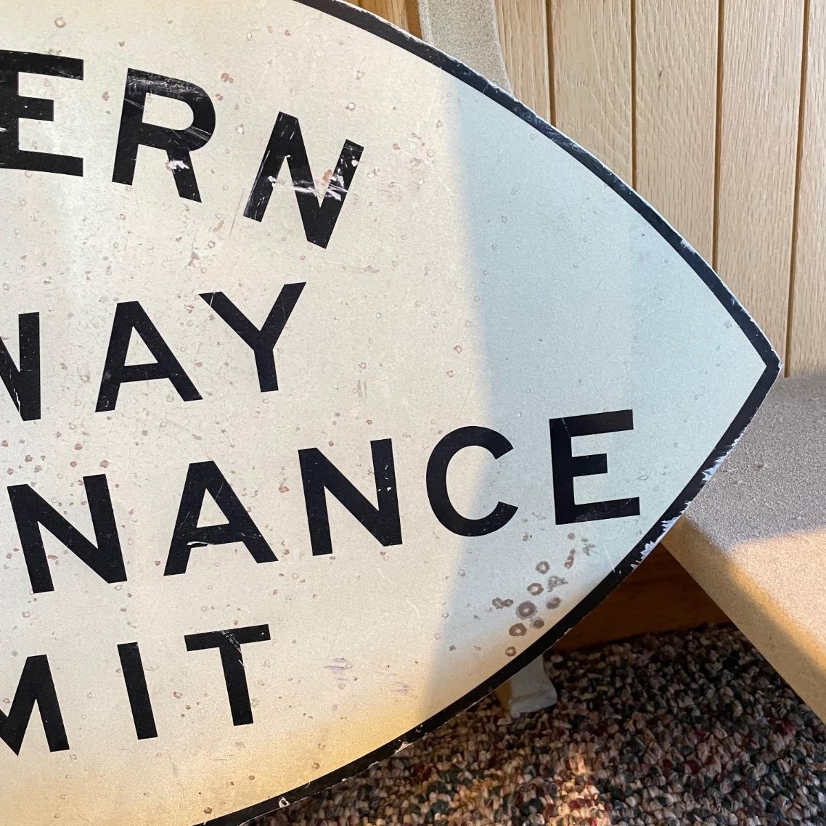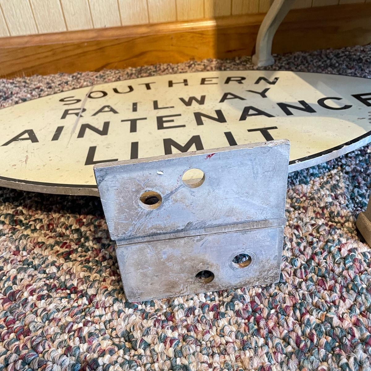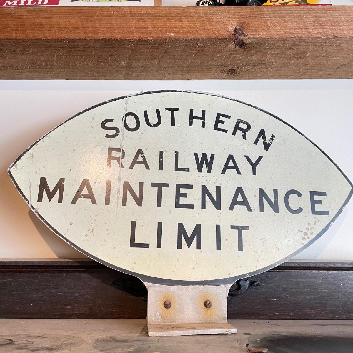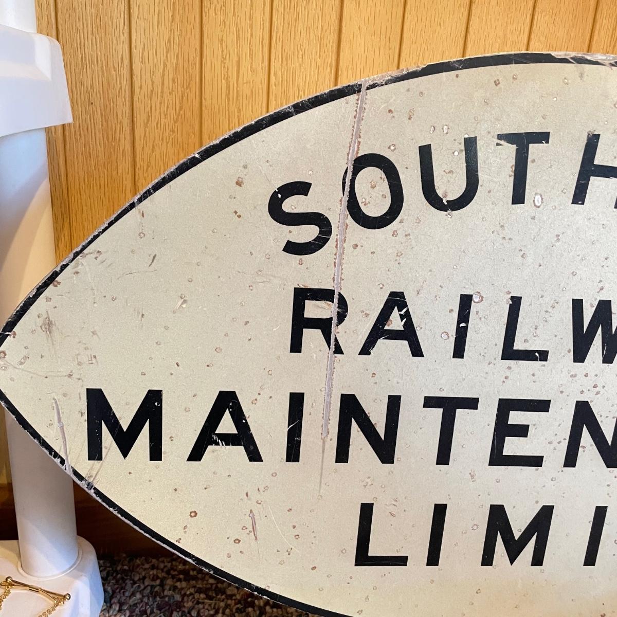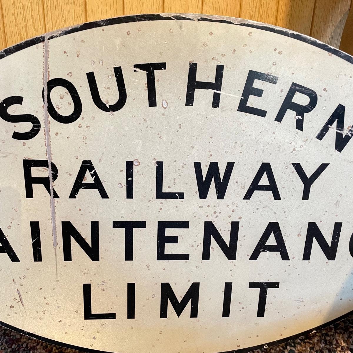 Heavy metal Southern Railway Maintenance Limit sign. Sign is free standing thanks to its mounts attached by flathead screws. Sign is 25” x 17” and just over a quarter of an inch thick. See images. Shipping available. Please call UPS with dimensions at 828-252-6930 for a shipping quote prior to bidding.