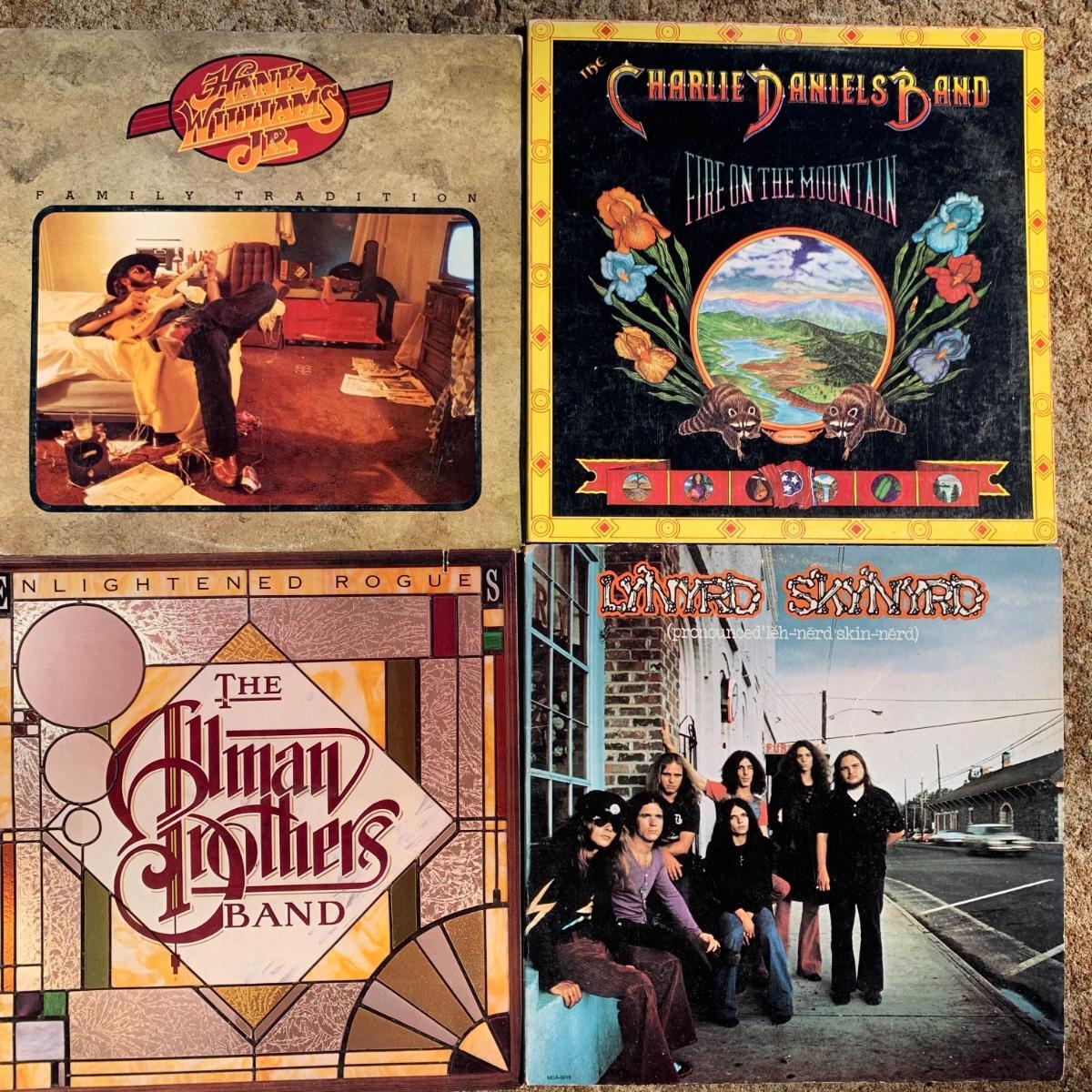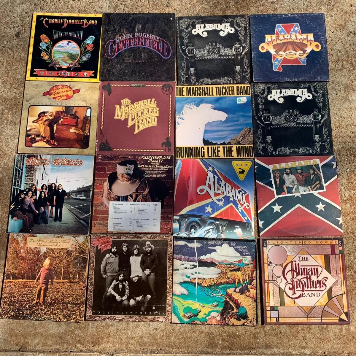 This lot features 16 southern rock vinyl records. There’s music from The Allman Brothers Band, The Marshall Tucker Band, John Fogerty, Lynyrd Skynyrd, Alabama, and more. All albums are in used condition. Shipping available.