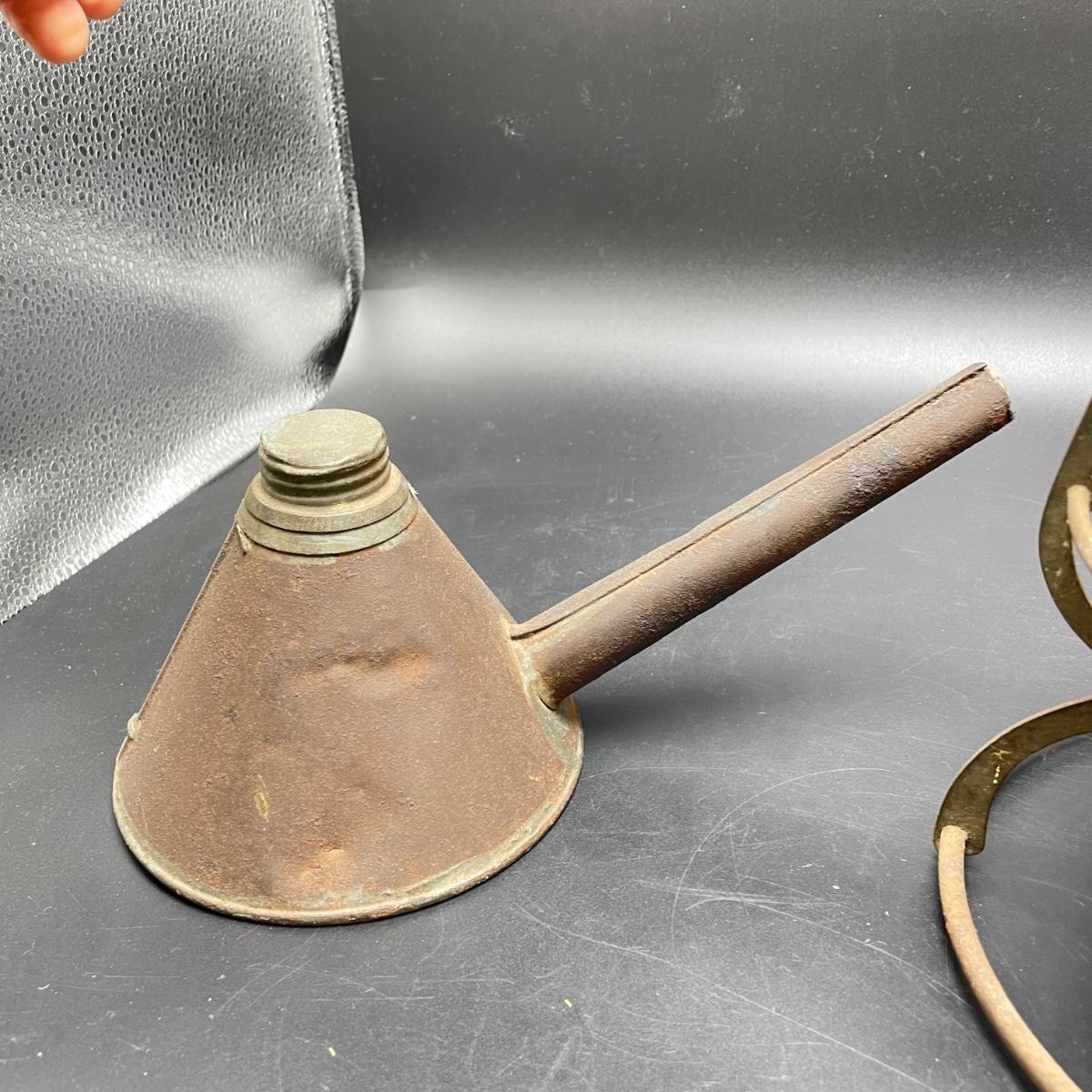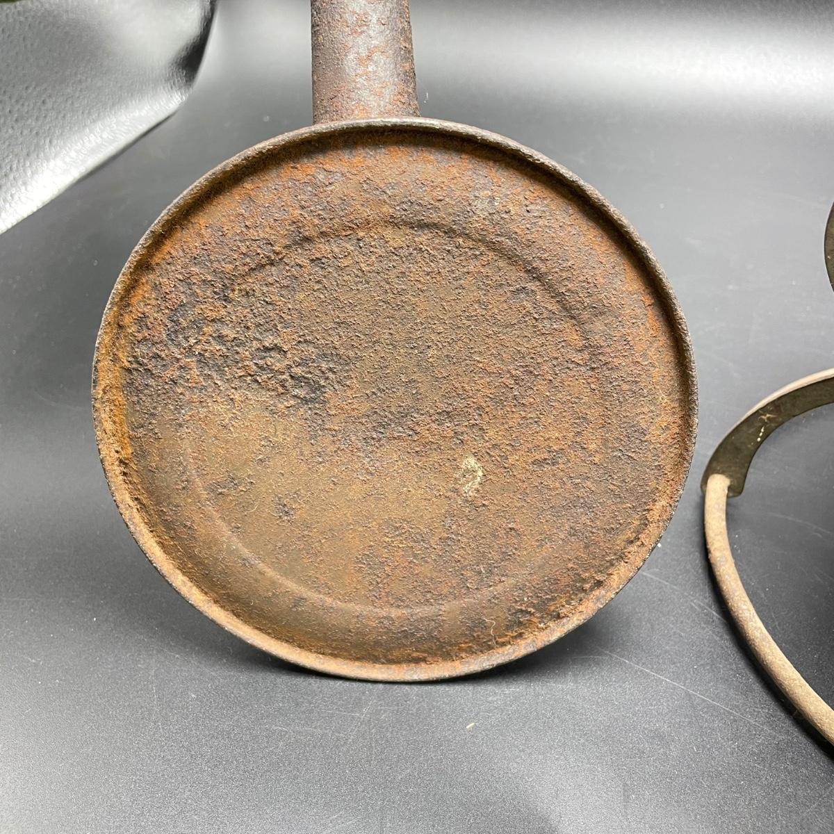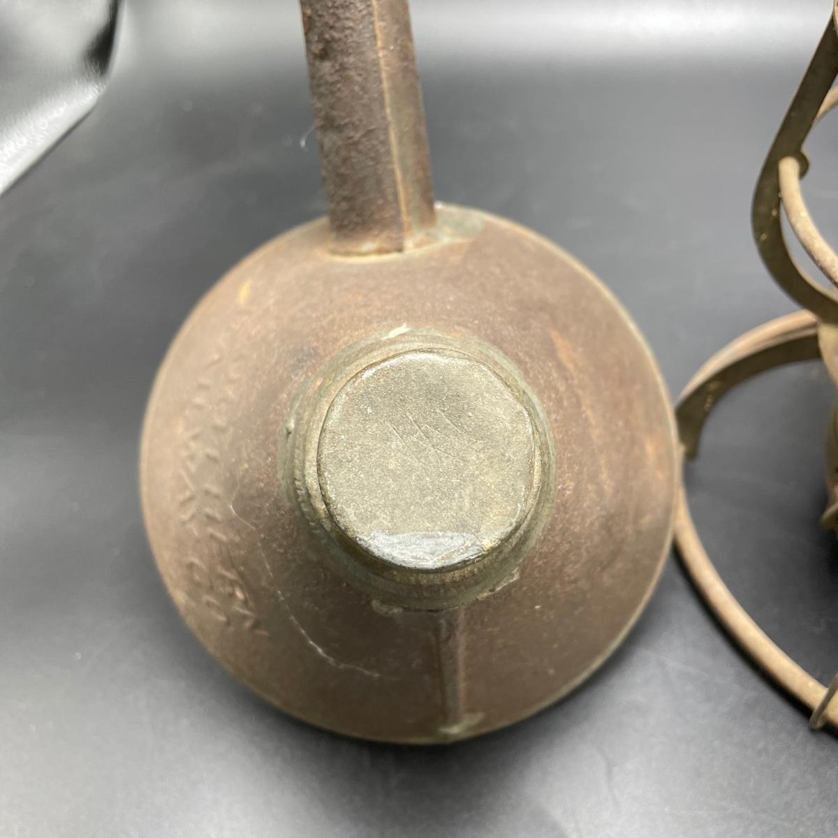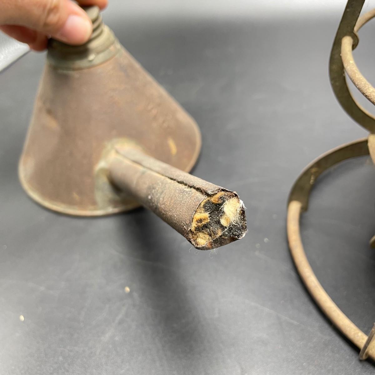 S. RY lantern has Southern marked on the clear glass globe and a worn manufacturer mark that appears to be Armspear. Lantern is 10” tall without its handle extended. Lantern is paired with a Southern Railroad oil lamp. Lamp measures 10” x 4.25” with a reservoir diameter of 5.25”