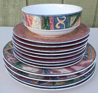 1 bowl 6in. diameter. 8 salad plates 8in. diameter. 4 dinner plates 10.75in. diameter