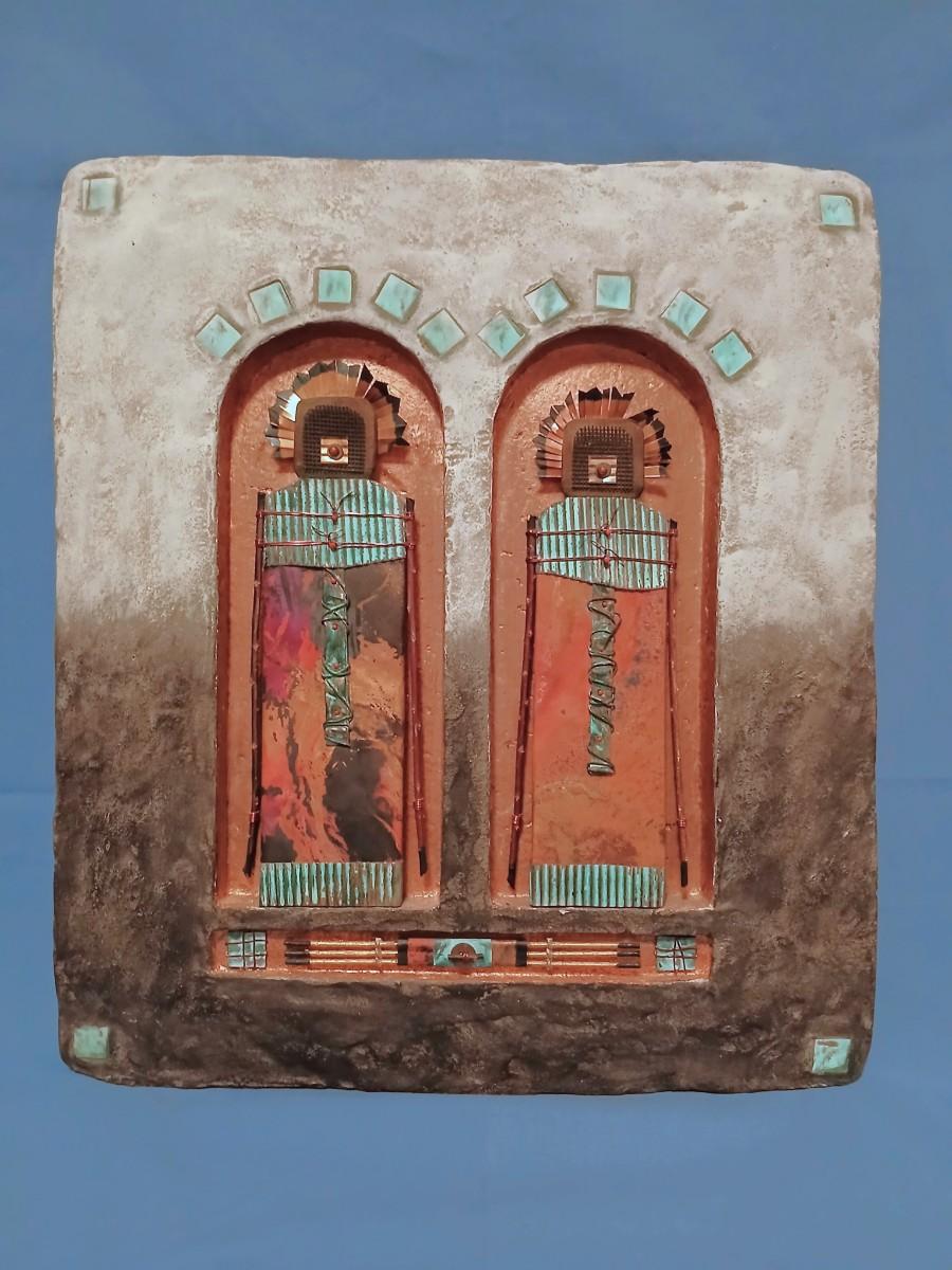 Titled "Offerings: Guardian Spirit Protectors #153", Numbered "6/99" & signed on back. 14 1/2" wide x 16 3/4" high x 1 1/4" deep.