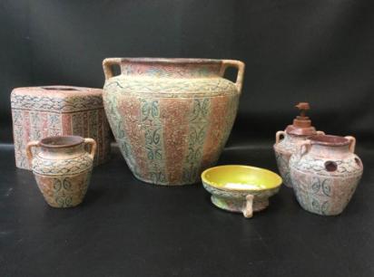 6 Piece Southwest Pottery Bathroom Accessories, in Good Condition.