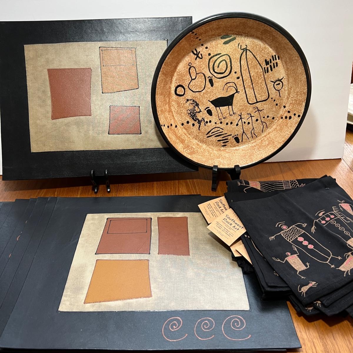 Southwest Rock Art Set Lot - NWT Napkins, Hand Painted Placemats, Ceramic Plate