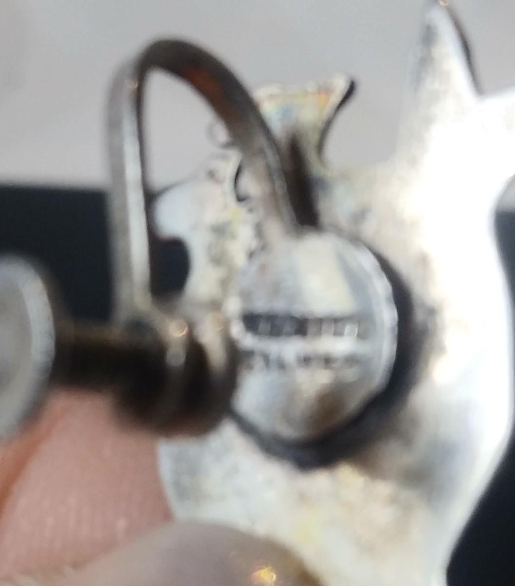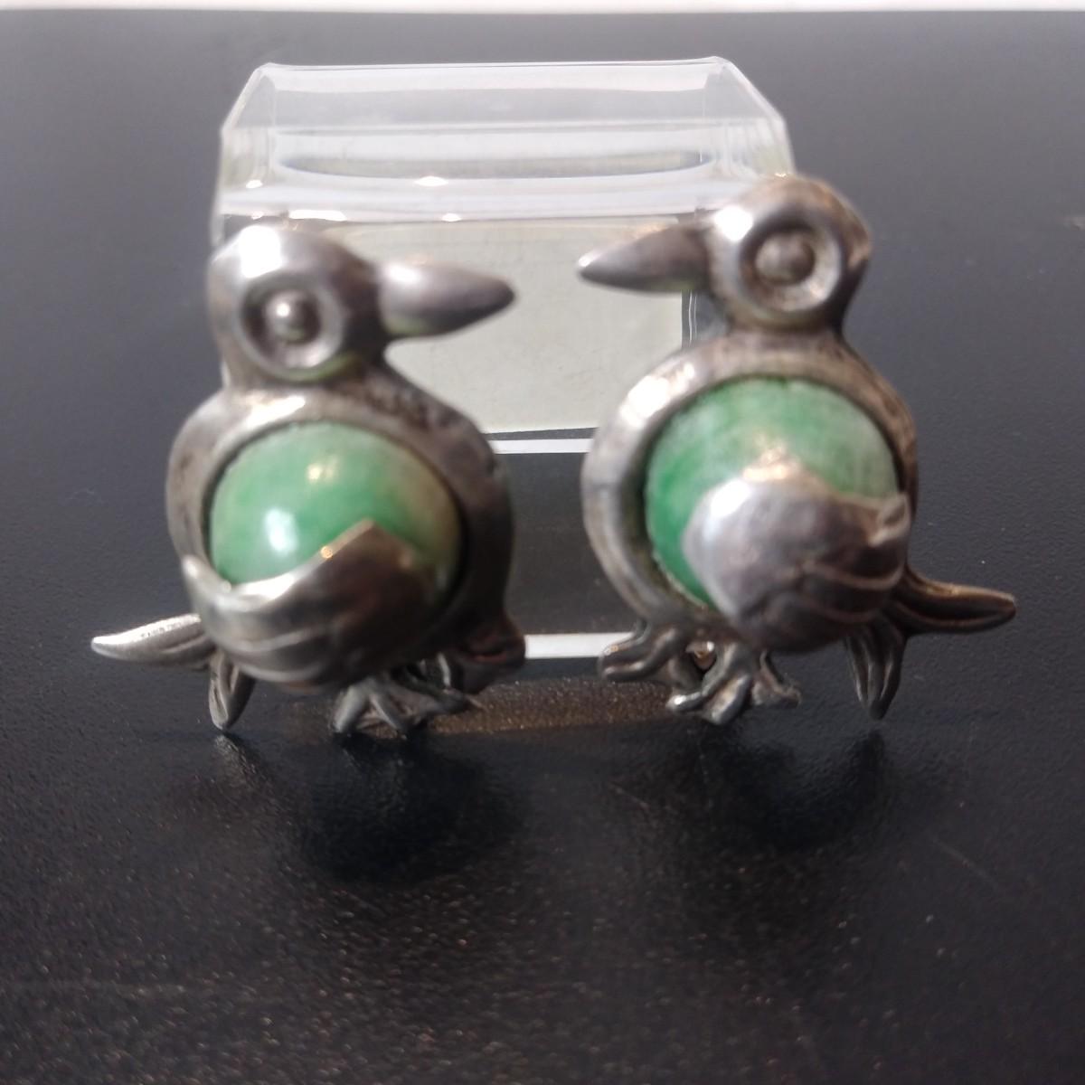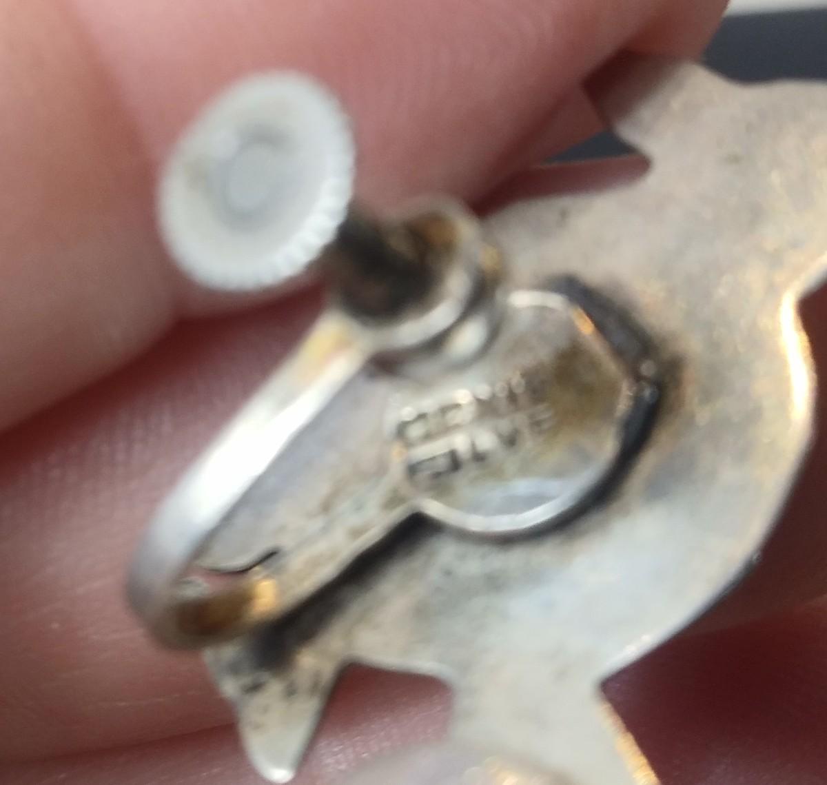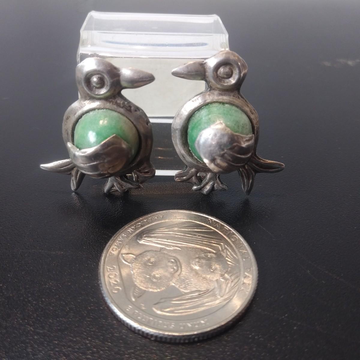 This auction lot is for a set of Southwest Silver Bird Earrings. These are screw back vintage earrings. We were told the stone was a tourquois. The silver is marked but we cannot read the mark. You be the judge - but these are so cute no matter.