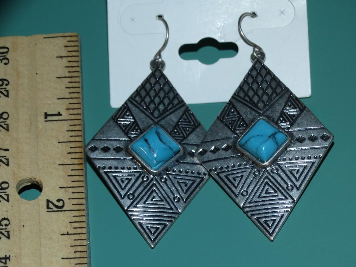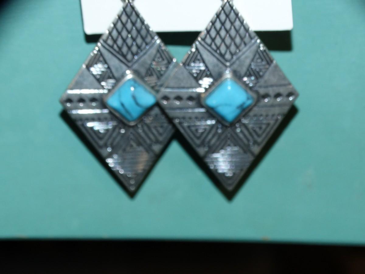 Southwest Style Silver/Gray Tone Diamond shaped Turquoise Earrings