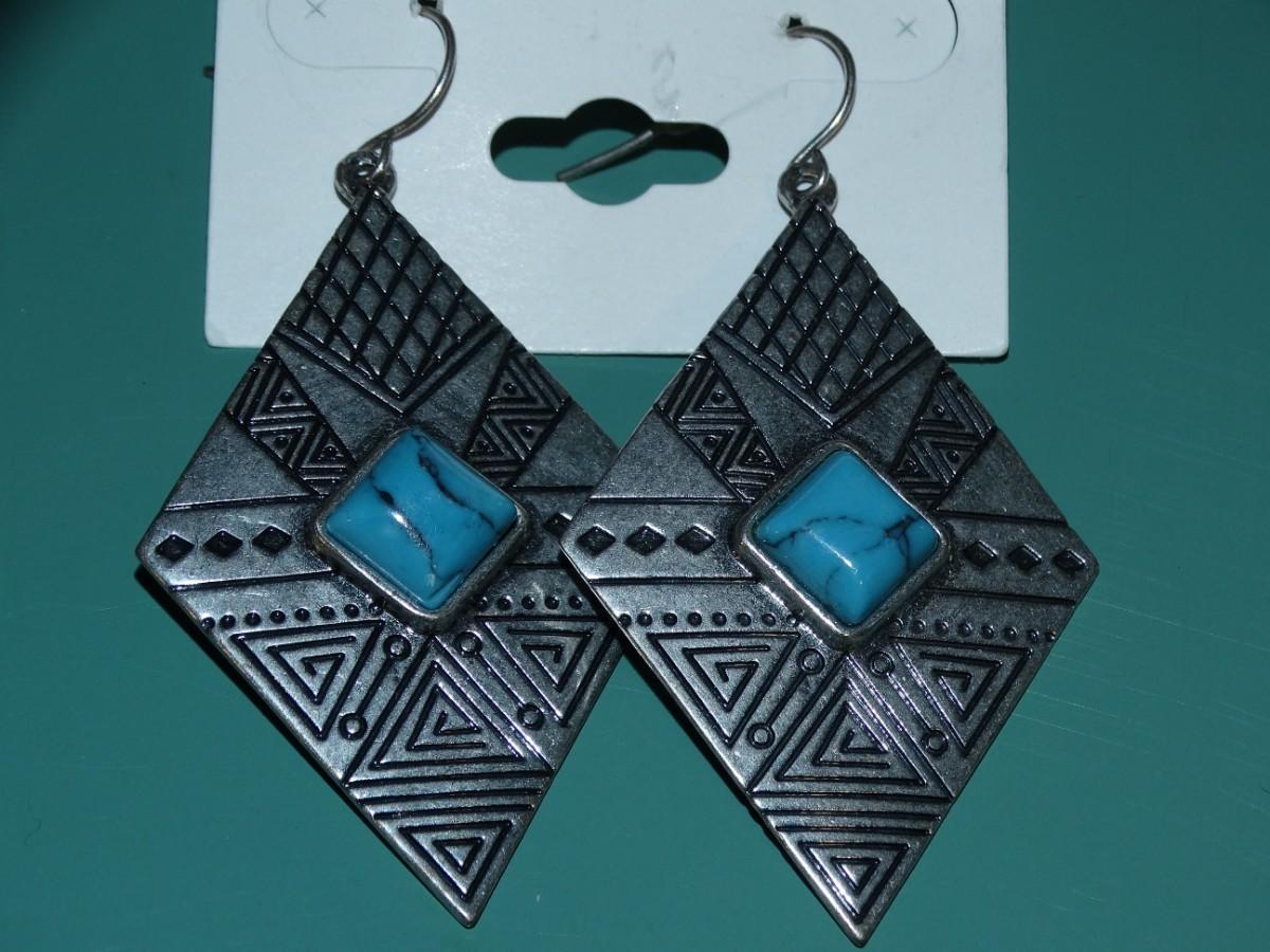 Southwest Style Silver/Gray Tone Diamond shaped Turquoise Earrings