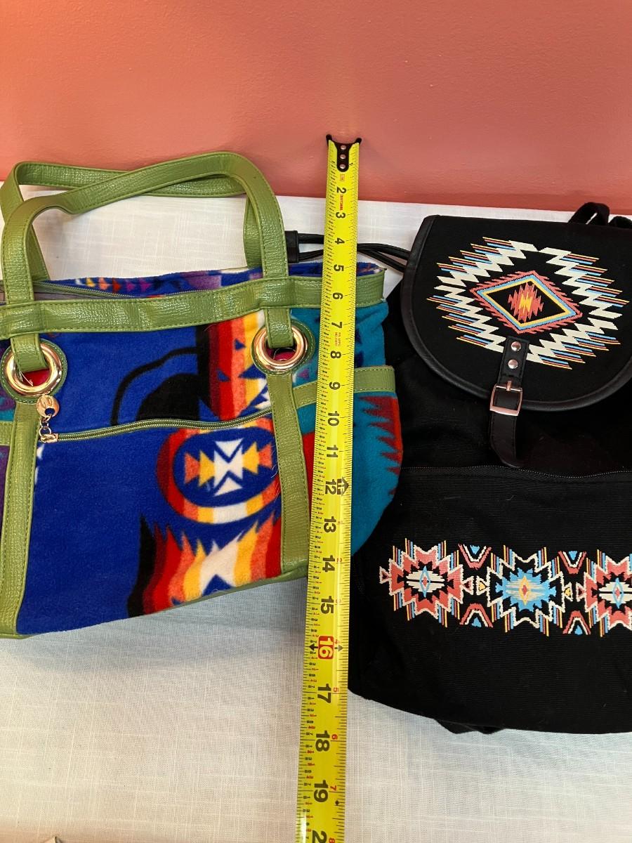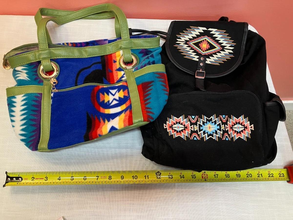 Set of 2 items: Southwestern style fleece purse and a Southwestern style backpack. Very cute and both if excellent condition!