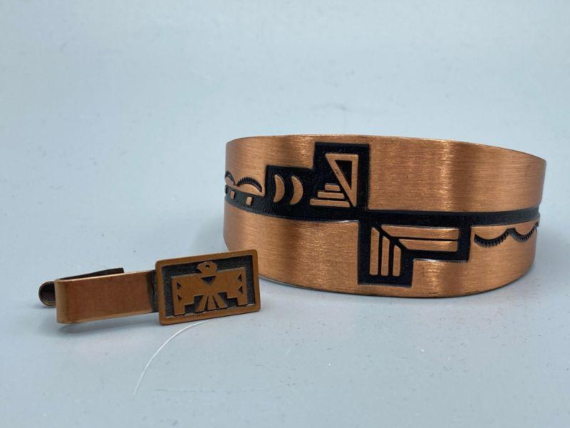 Southwestern Copper Cuff Bracelet and Tie Clip