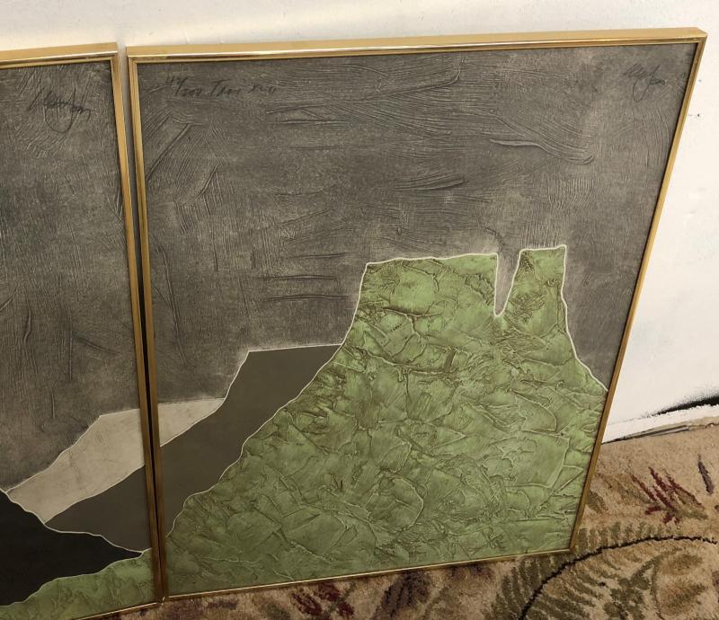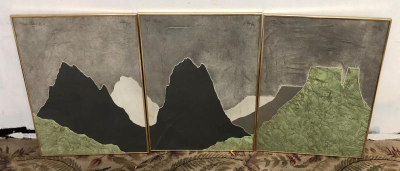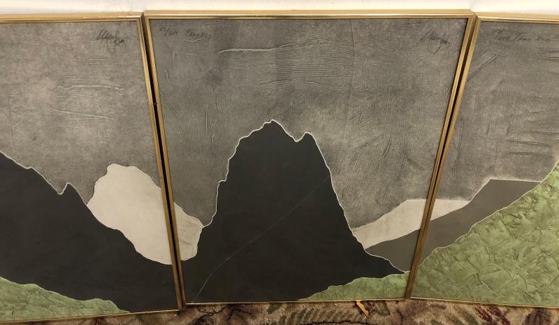 Here is a signed and numbered three-panel southwestern landscape scene...Framed...
