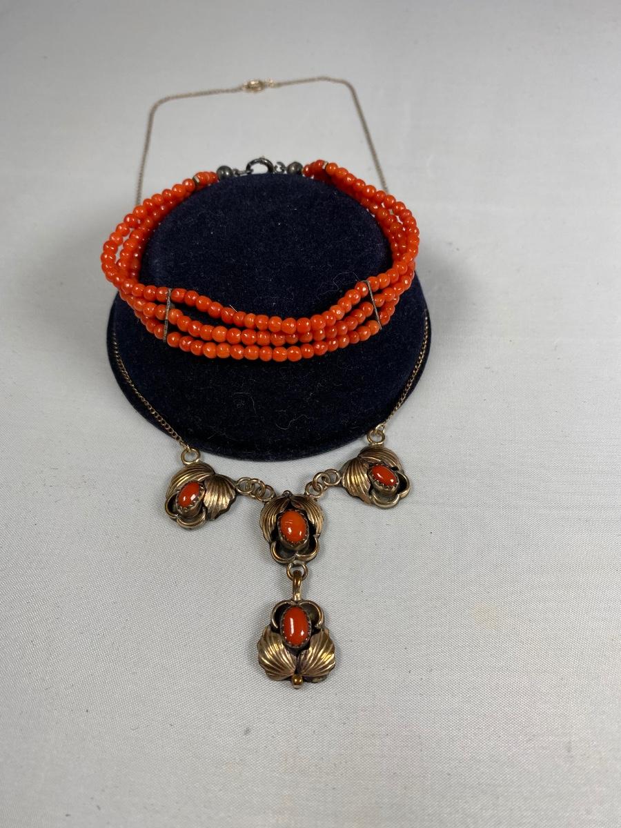 Southwestern Red Coral Beaded Bracelet & 12kGF Necklace