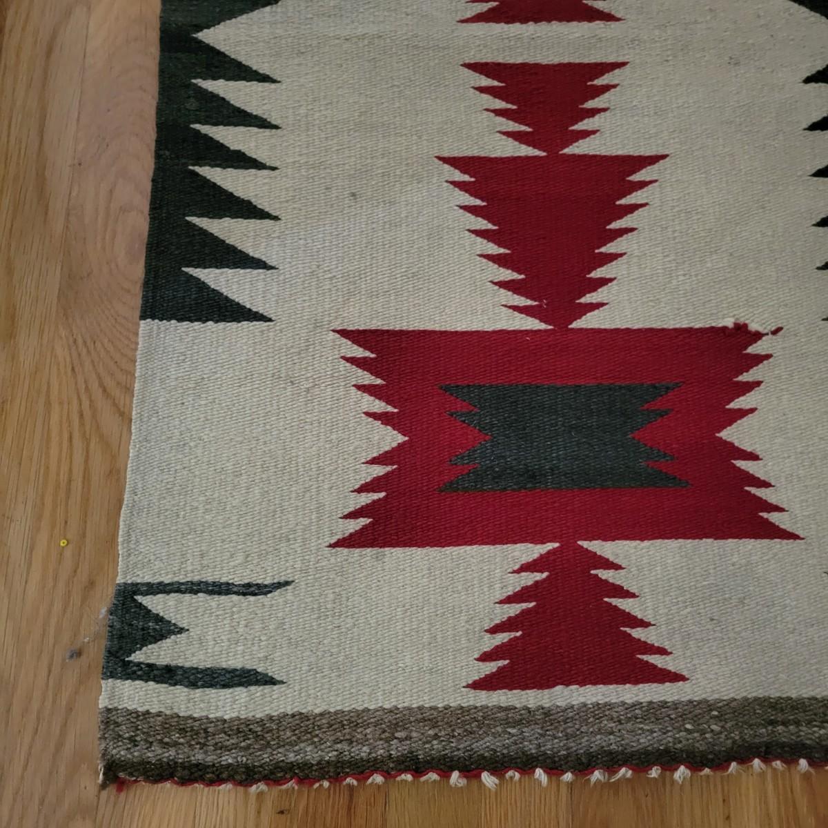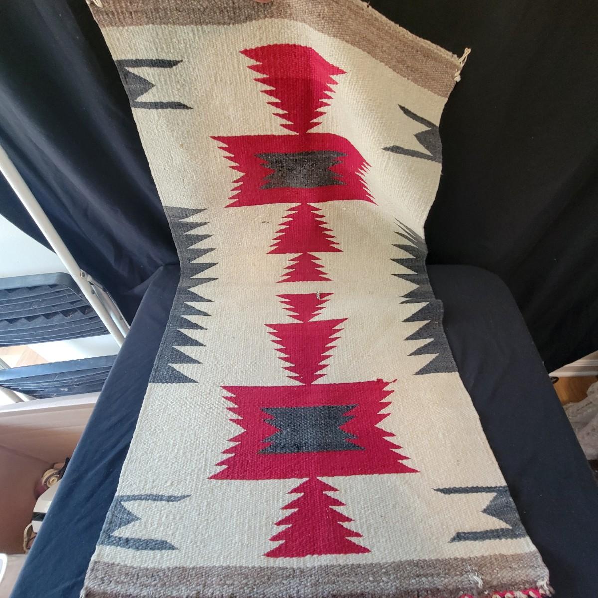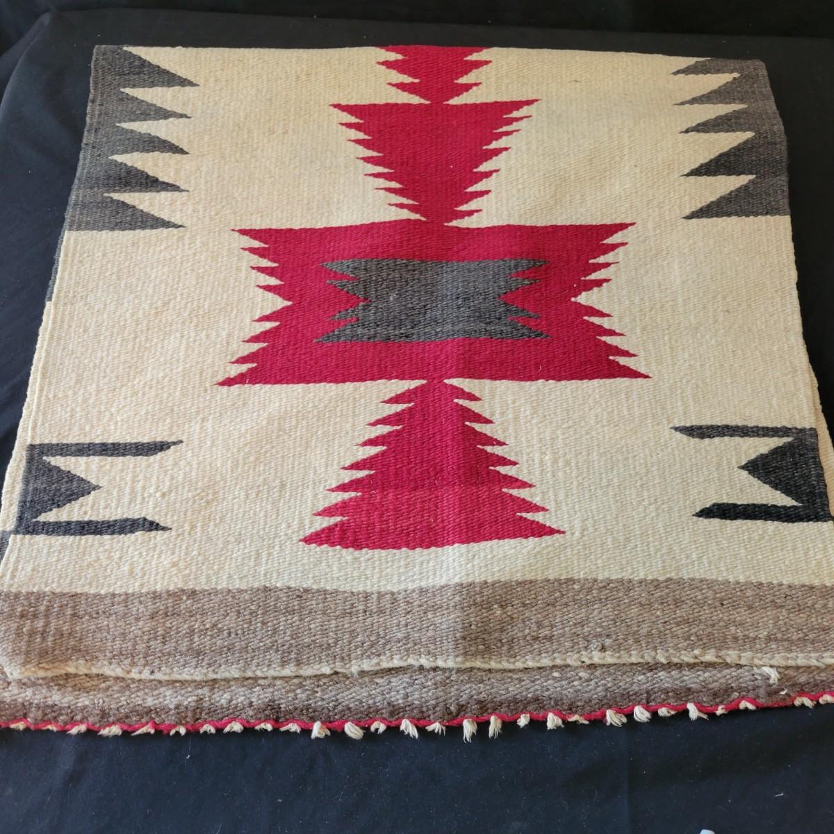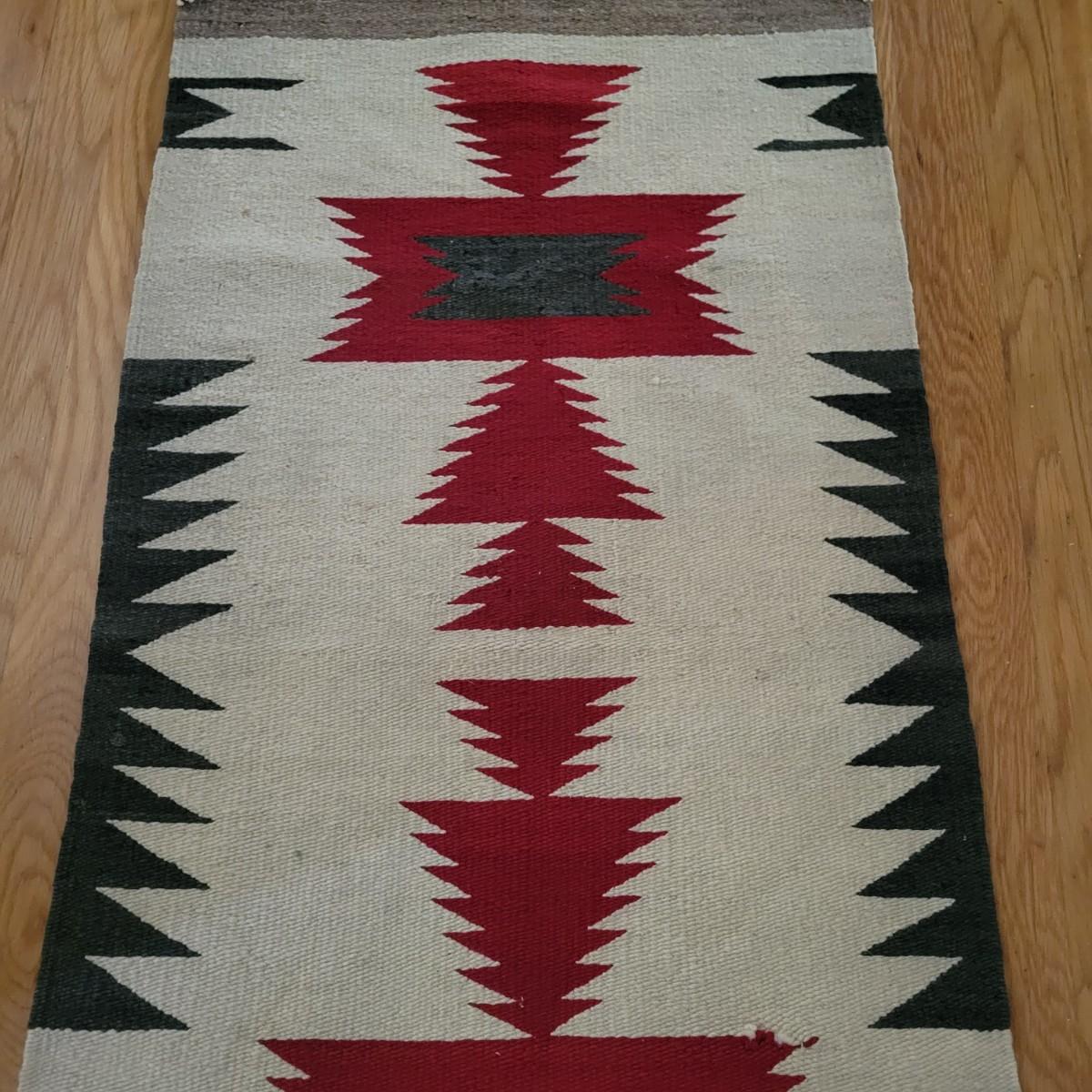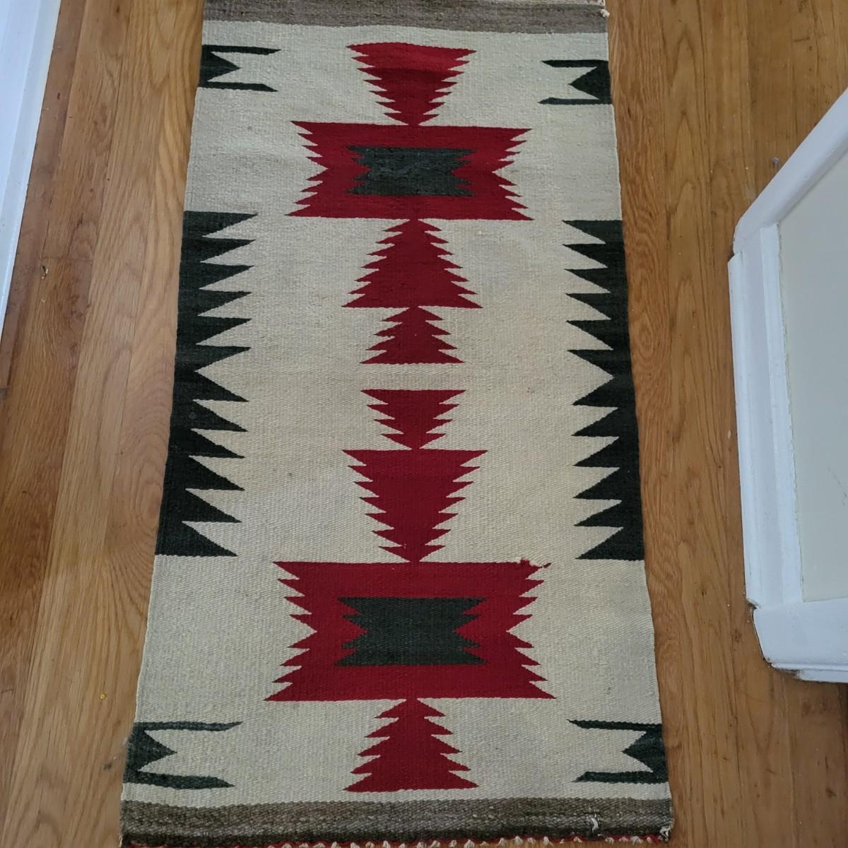 Rug with a Southwestern design in good condition. Nice red and black and beige design. Measures approximately 40" x 21" .