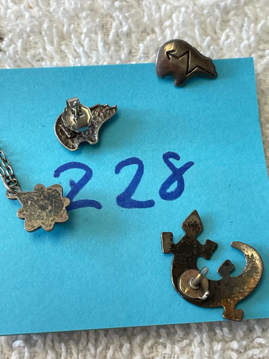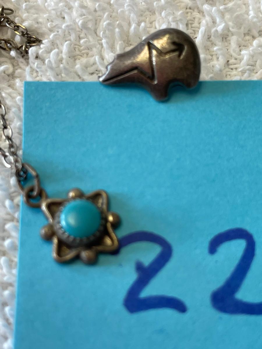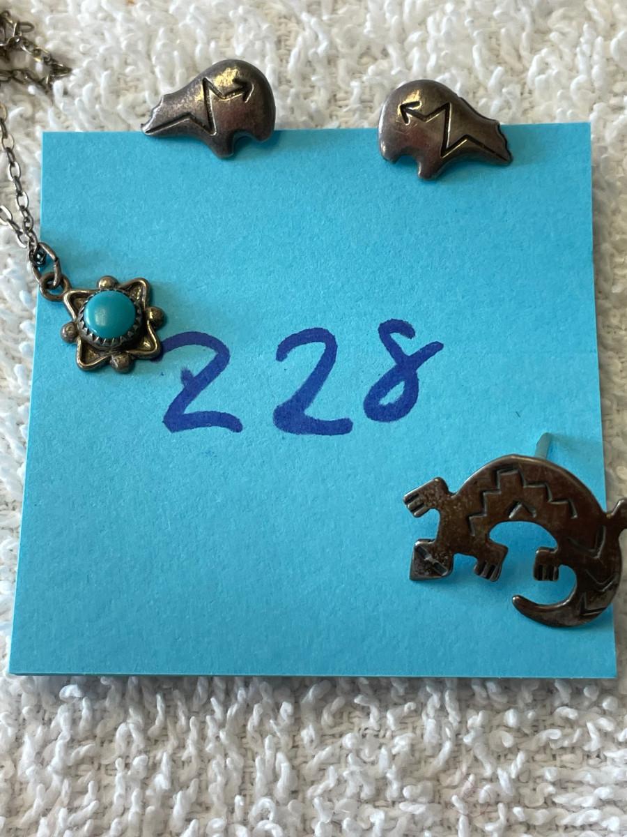 Bears are earrings. The necklace is old pawn. The lizard is a hat pin.