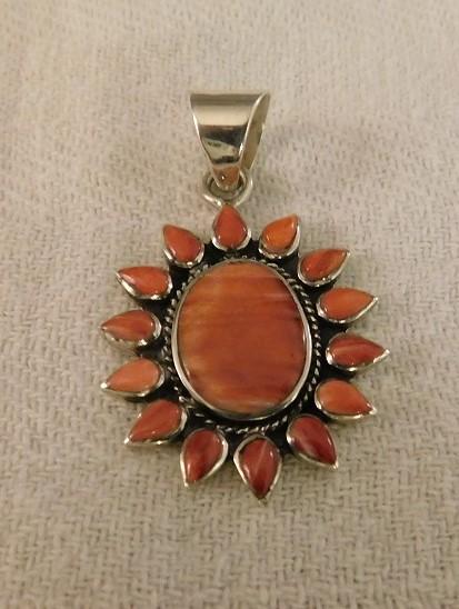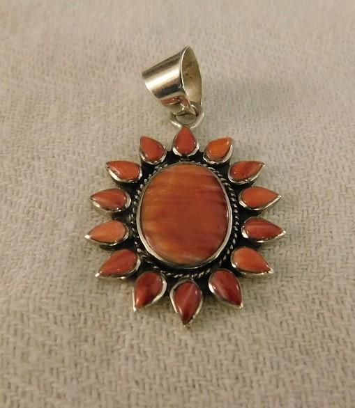Southwestern Style Red Spiny Oyster 1 1/2" Pendant set in sterling silver