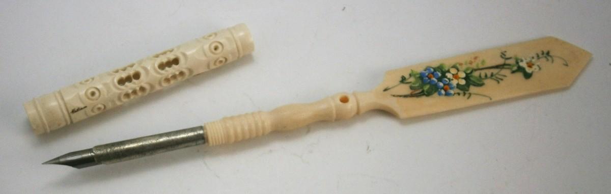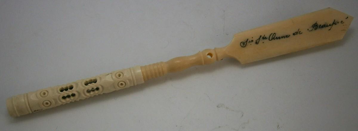 Souvenir of Sainte-Anne-de-Beaupré Dip Pen and Letter Opener, Quebec Cananda, early 1900's or earlier, 7 1/4 in. long.