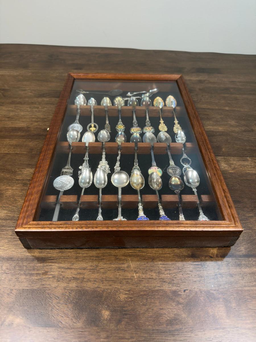 Souvenir Spoons Displayed In A Wooden Case - FREE NATIONWIDE SHIPPING FOR ALL LOTS