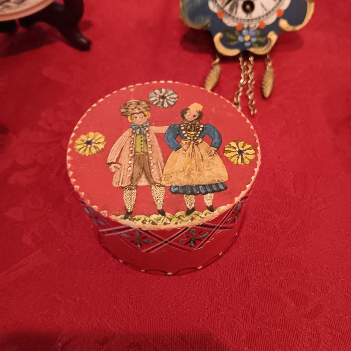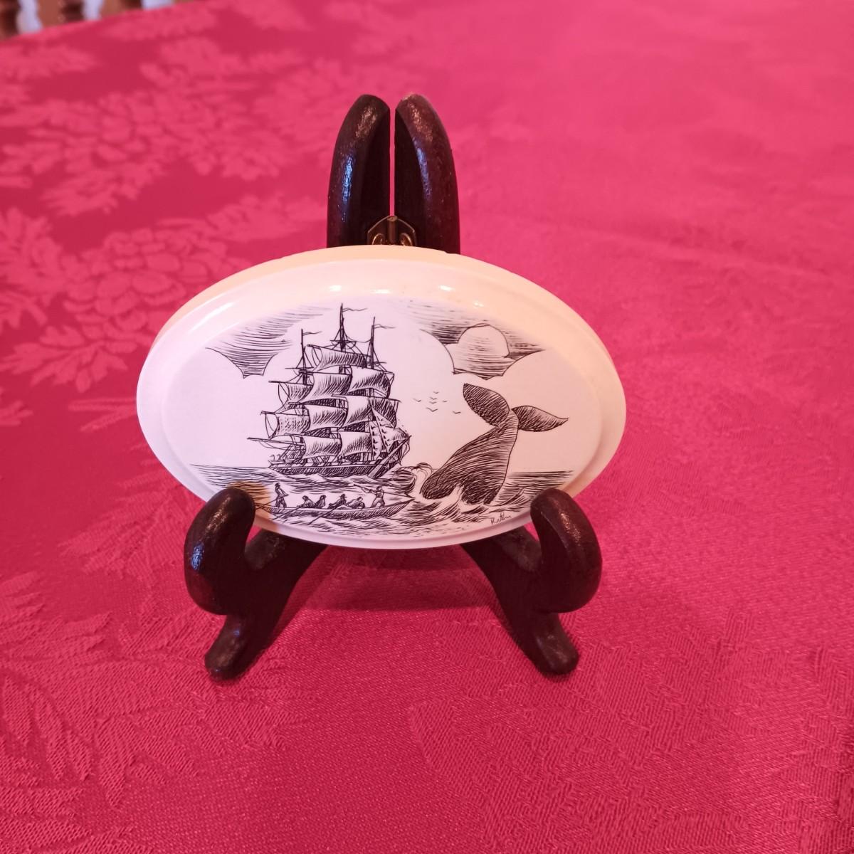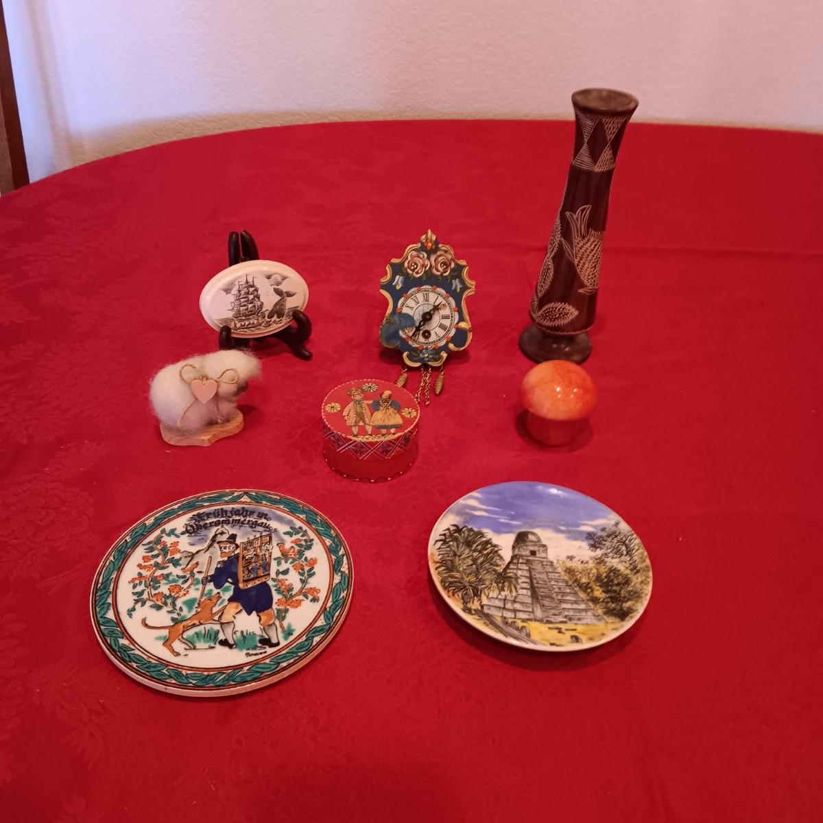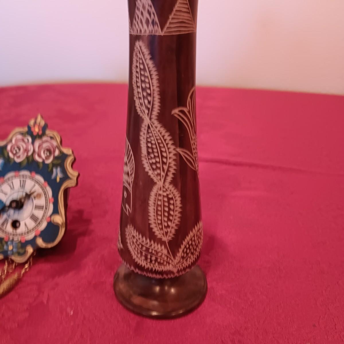 SCRIMSHAW BELT BUCKLE, MARBLE ETCHED VASE, SMALL PENDULUM CLOCK, TRINKET BOX, MARBLE MUSHROOM AND MORE