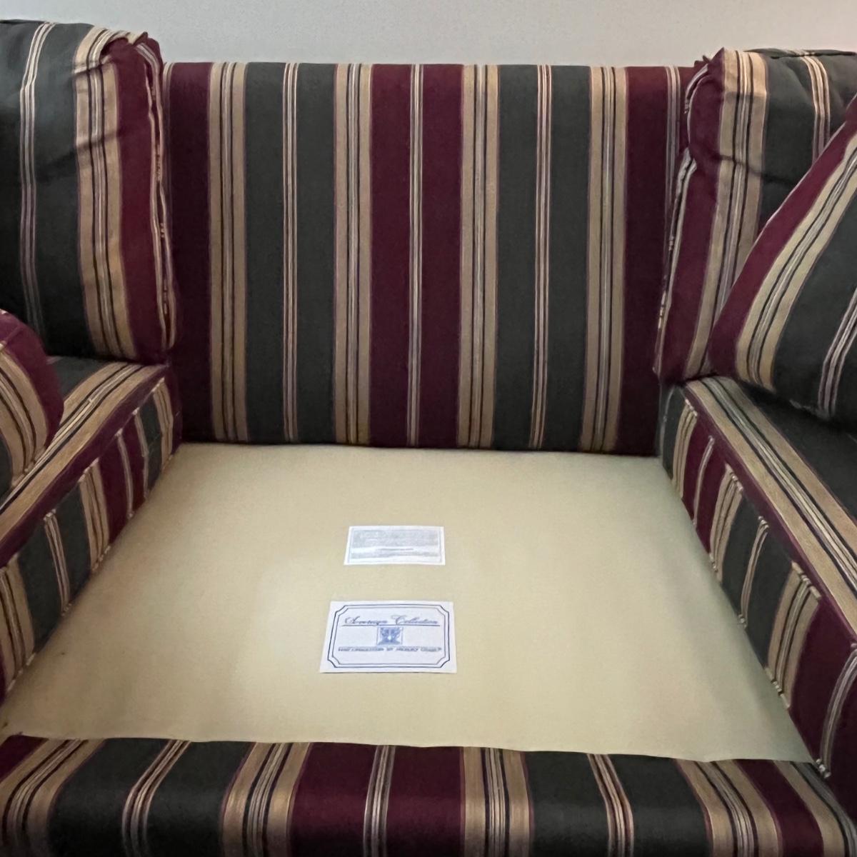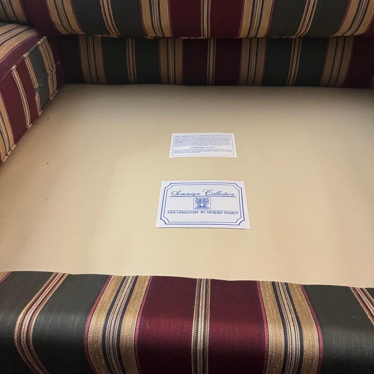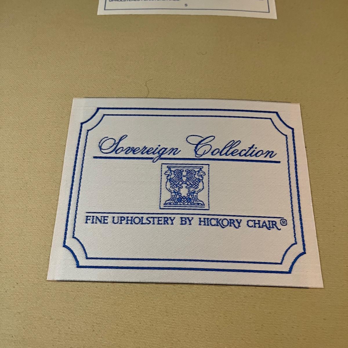 Lot includes a Sovereign Collection couch by Hickory Chair with two matching pillows. Couch is in good condition with Just a few marks on the hidden wooden feet, see image. Couch measures 38” x 86” x 31” with 19” seat height. Winning bidder must bring help to move and load due to weight and size of this item.