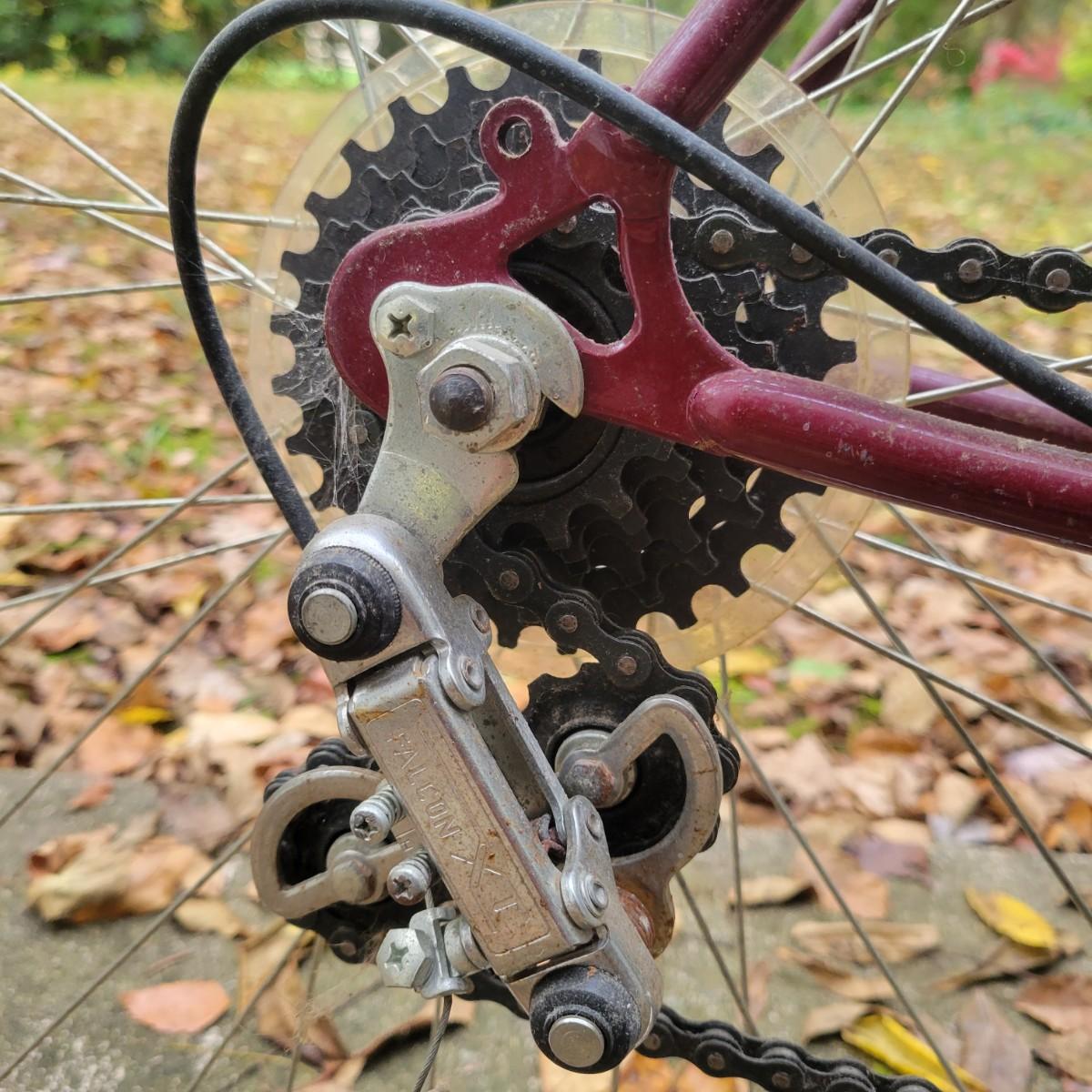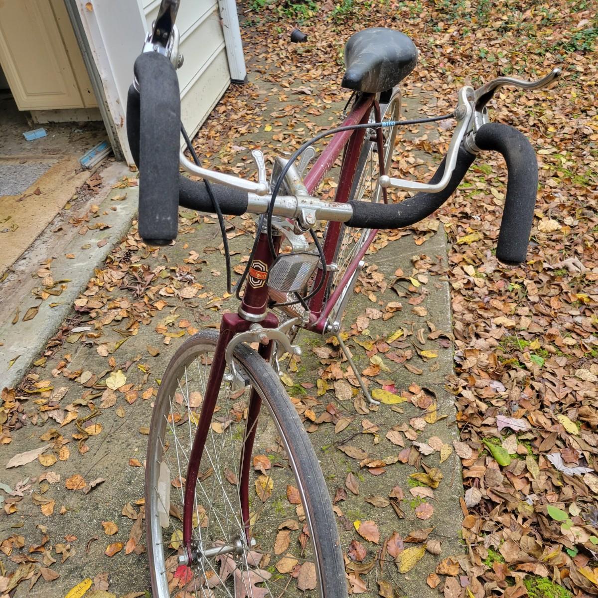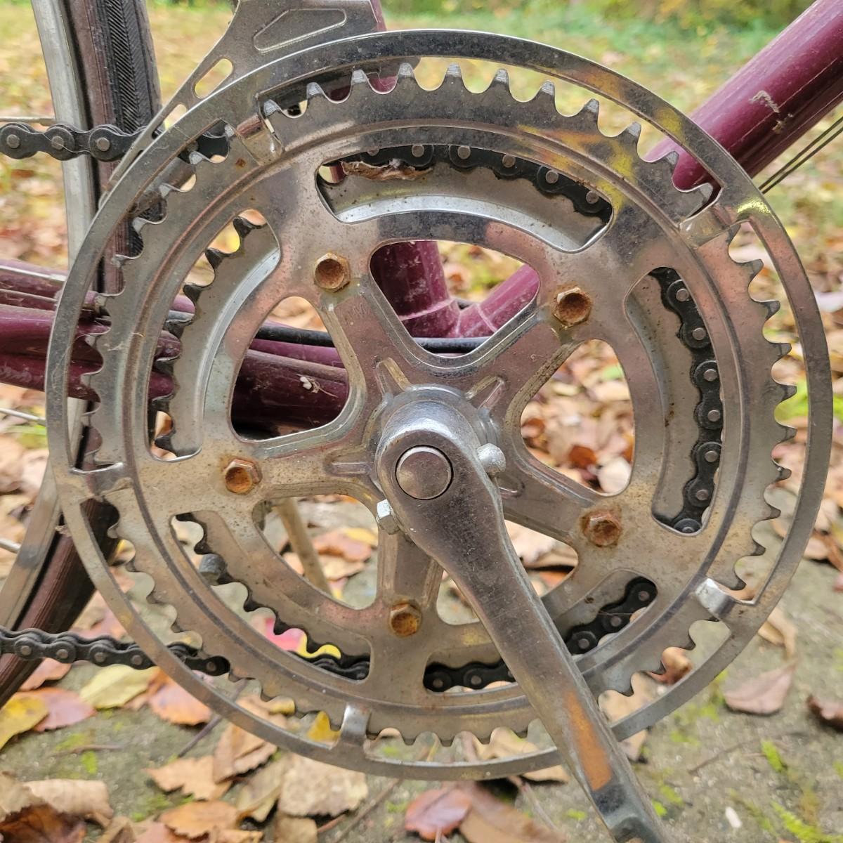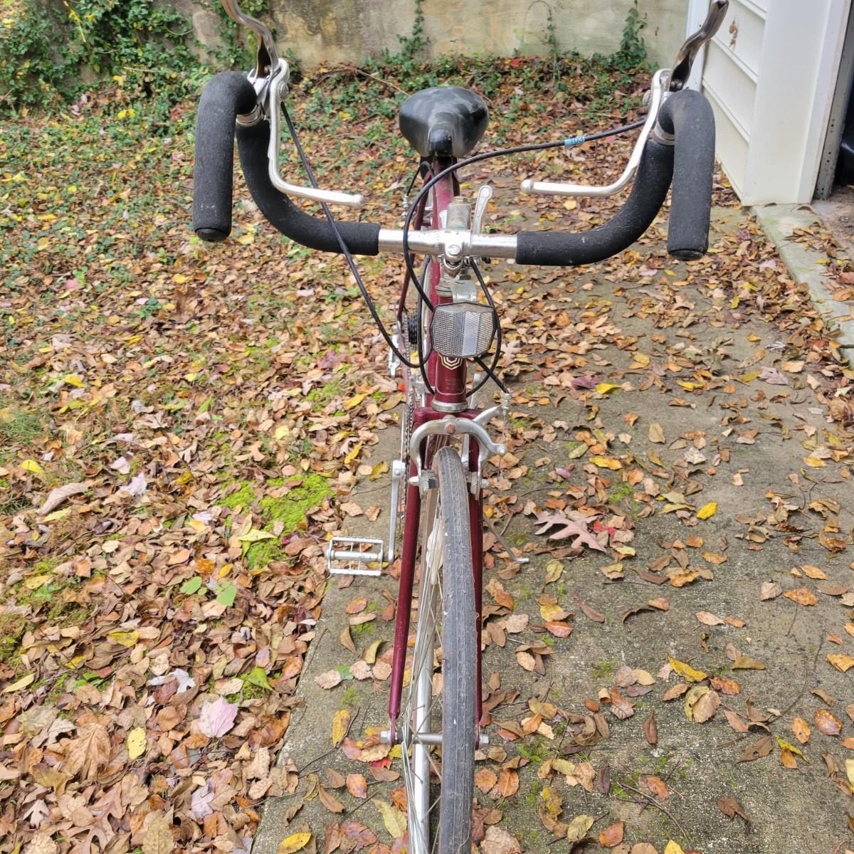 A Sovereign Free Spirit 12 speed road bike in good condition with some minor scratches and rust on some components. This bike is a steel tubed road bike with Falcon XI components, cantilever brakes and old school shifters on the head tube. The tires are 27" and top tube measures approximately 20.5" and the down tube measures 21". This bike is missing one pedal. Local pickup only