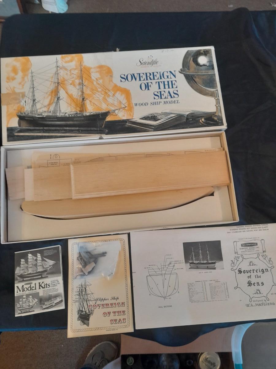 SOVERIGN OF THE SEAS WOOD SHIP MODEL IN BOX WITH DIRECTIONS APPEARS COMPLETE