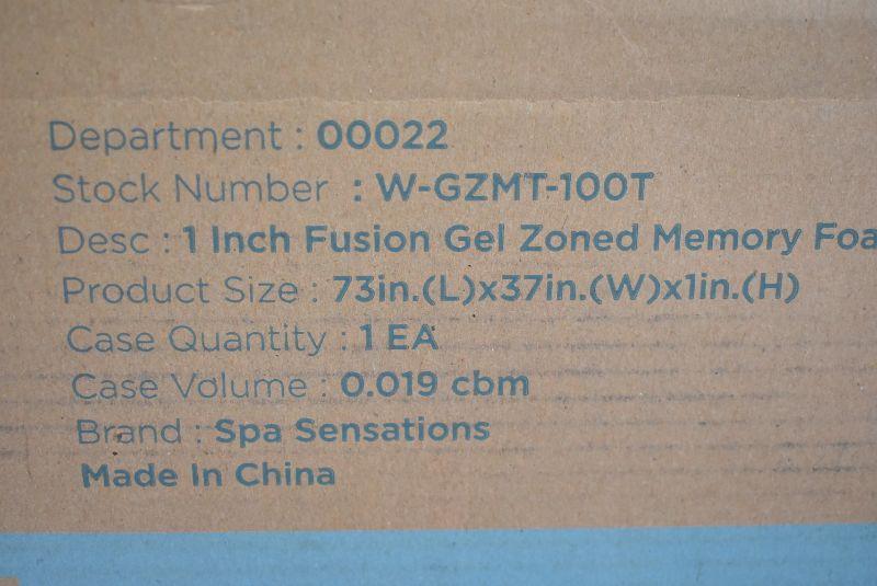 Spa Sensations Zoned Fusion Gel Memory Foam 1" Mattress Topper, Twin Size, $21 Retail - New