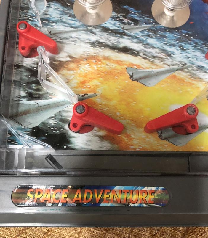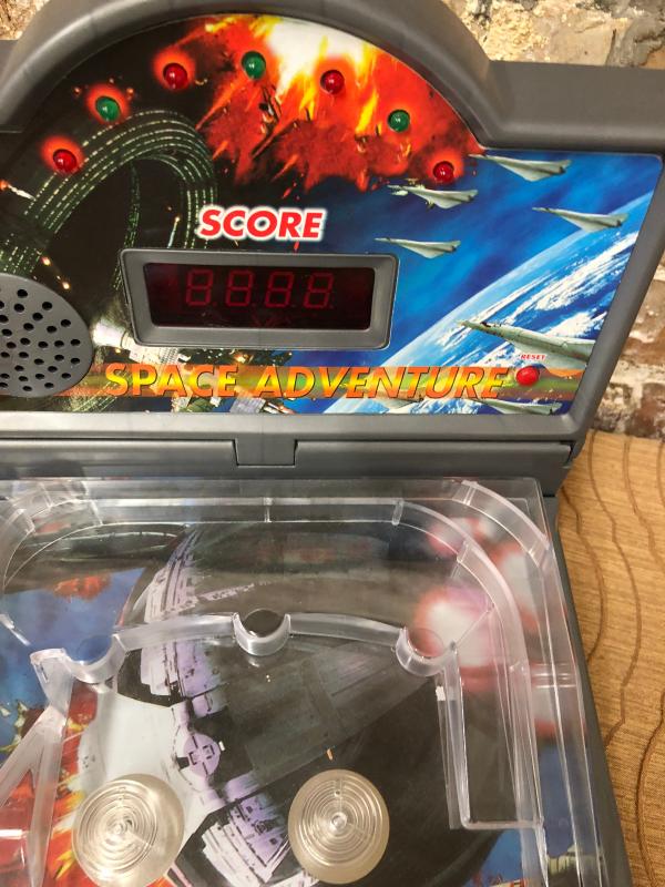 Here is a Space Adventure battery operated pinball machine..This toy shows little or no use...Lighted..Working...