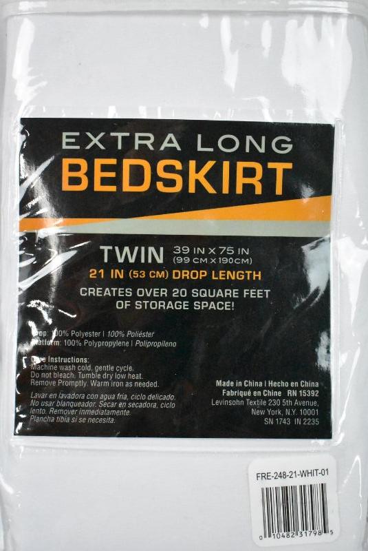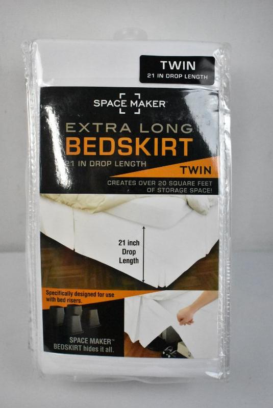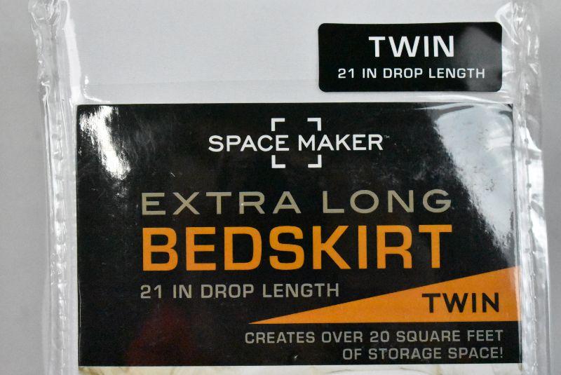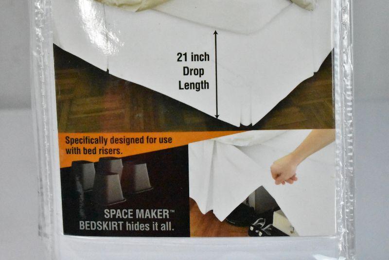 Space Maker Tailored Underbed Storage 21" Bedskirt, Twin Size, White - New