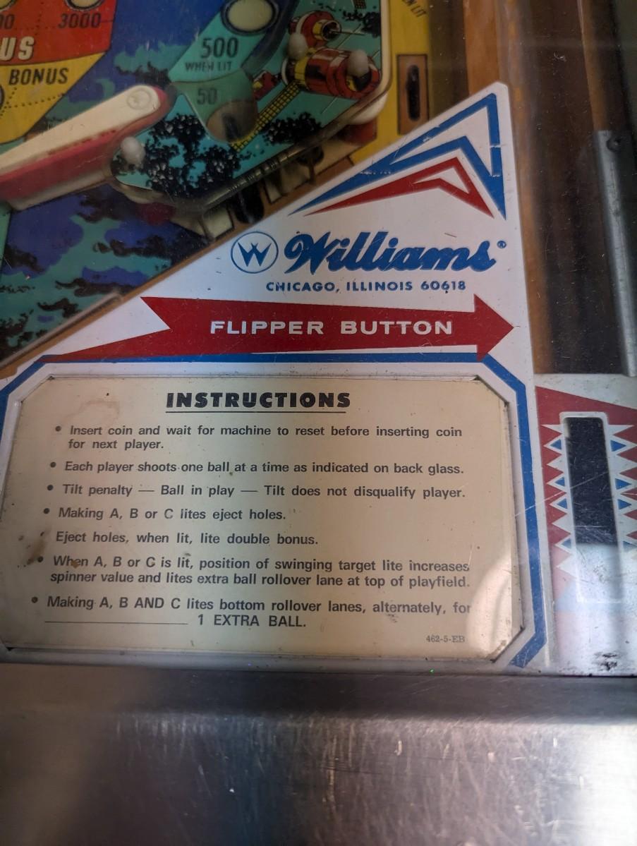 Space Odyssey Williams Pinball Machine With Instruction Manual