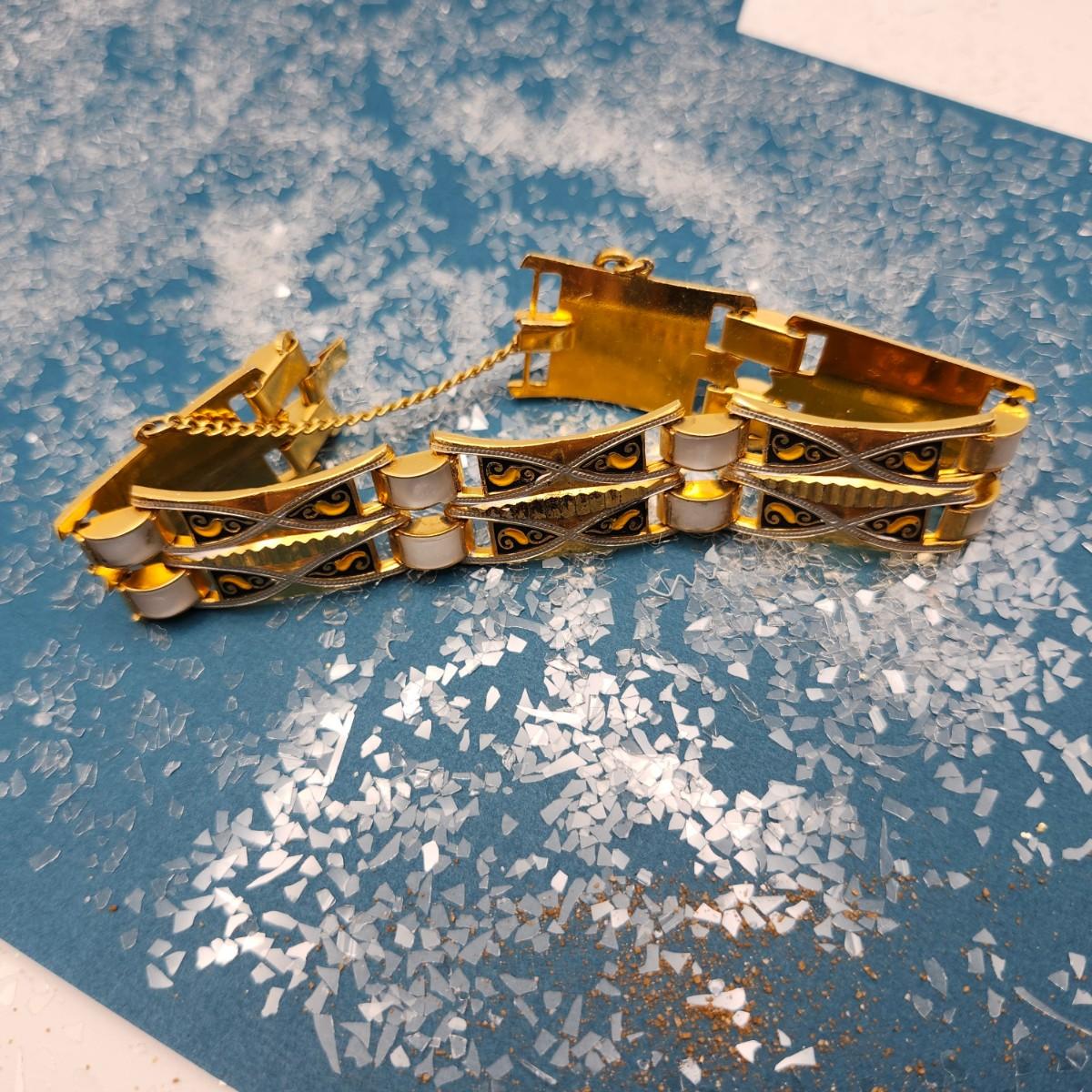 Lovely little link bracelet, mother of pearl clasps between the links. 8 inch length.