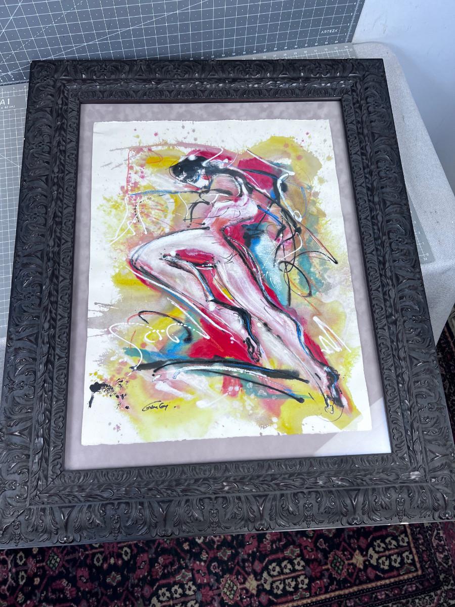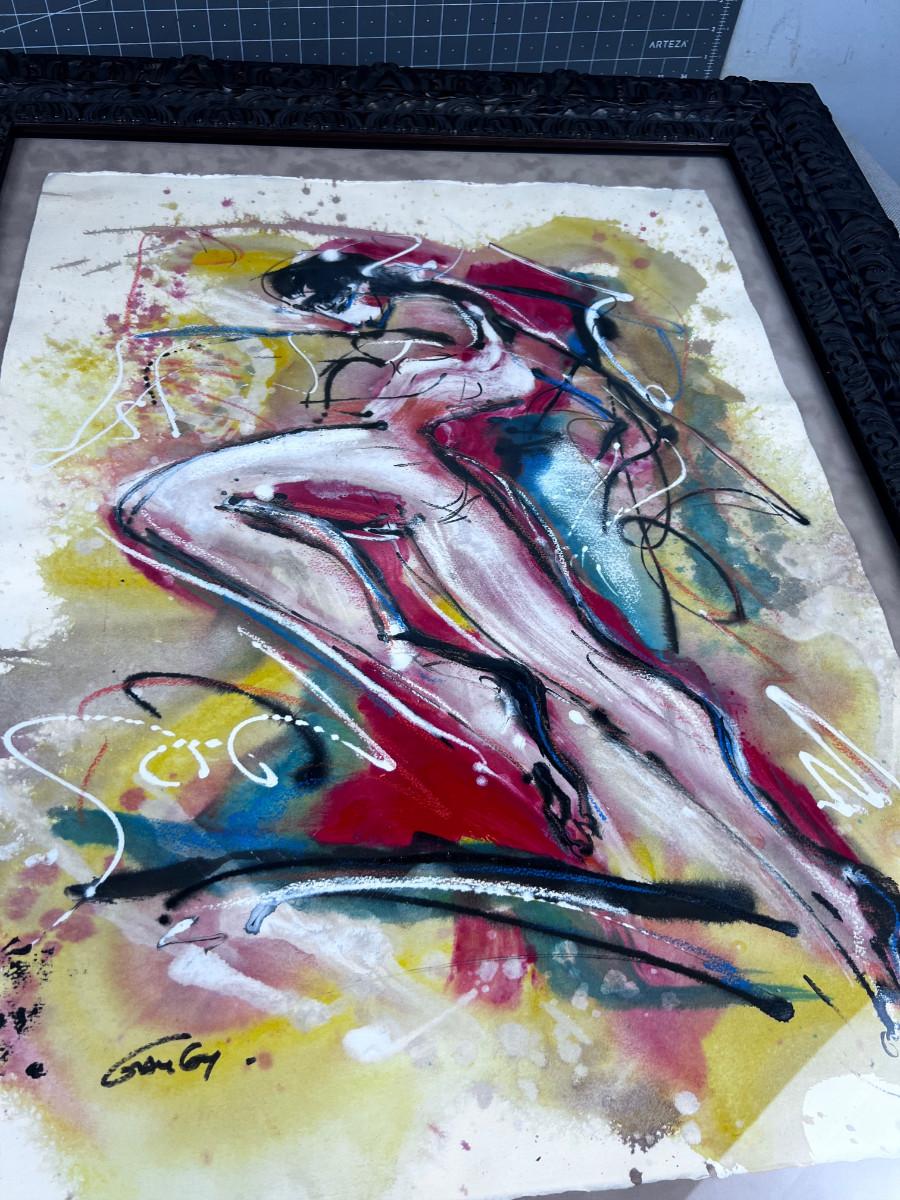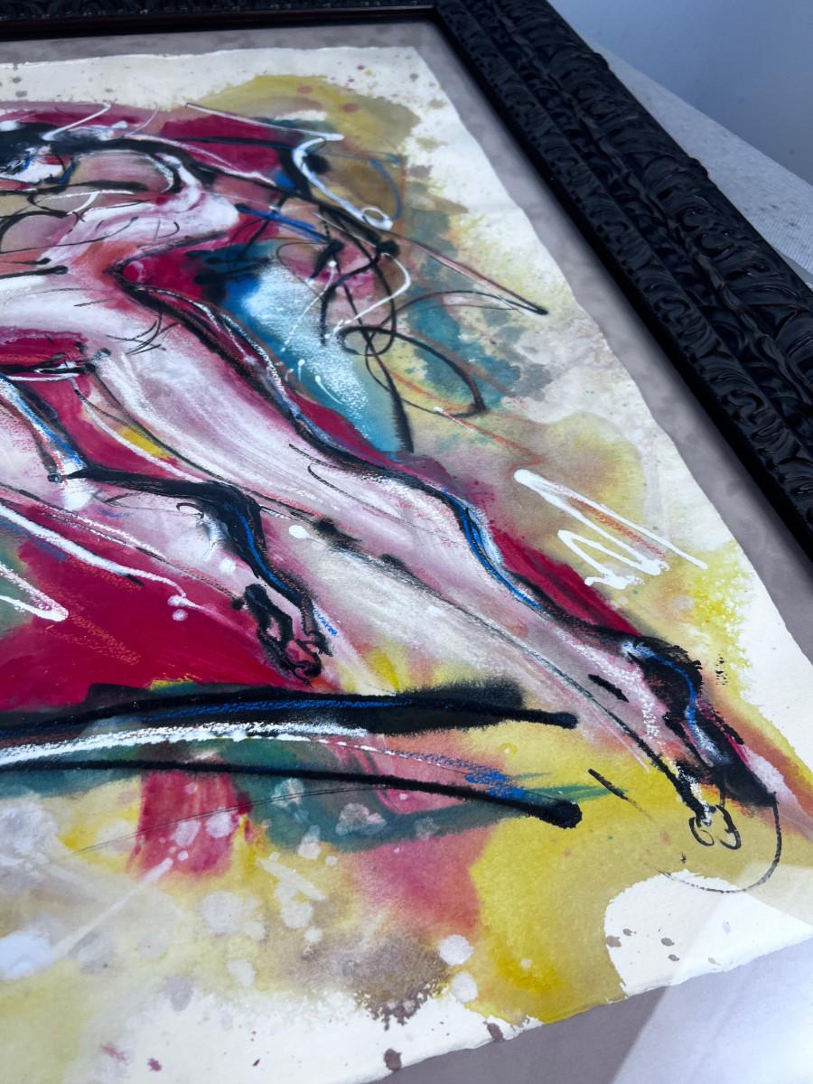 Spanish Dancer  Abstract Water Color Under Glass Signed