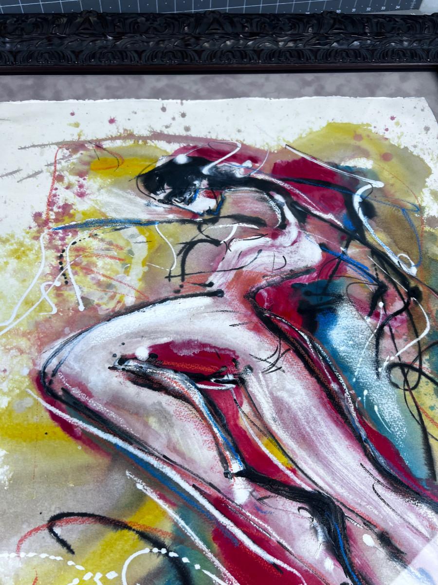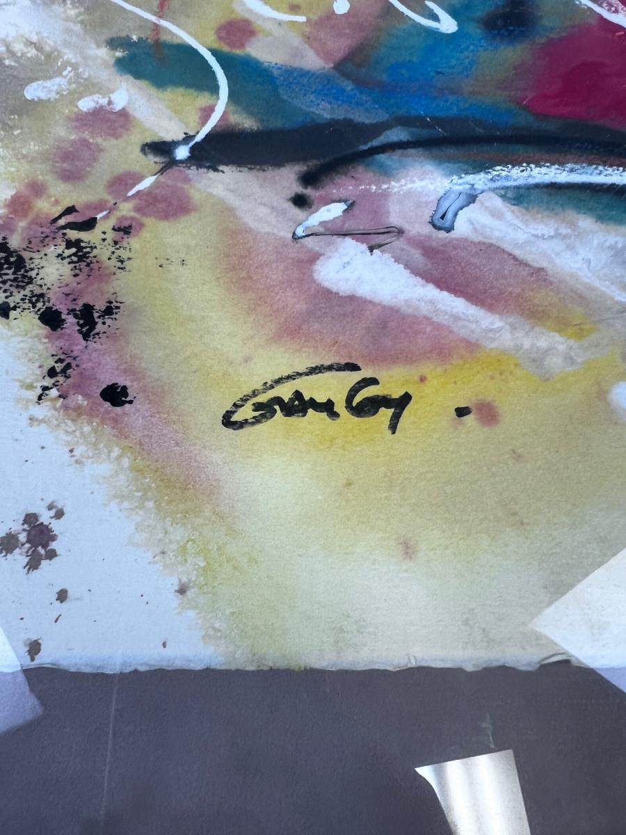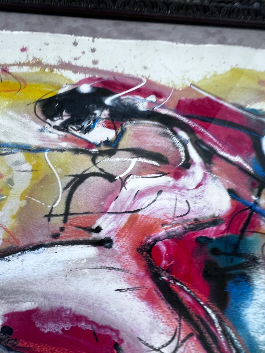 Spanish Dancer  Abstract Water Color Under Glass Signed