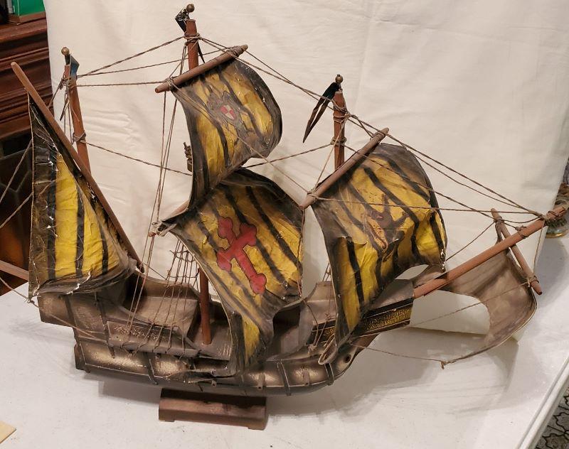 Spanish Galleon Santa Maria Wood Ship 27" W 20"H