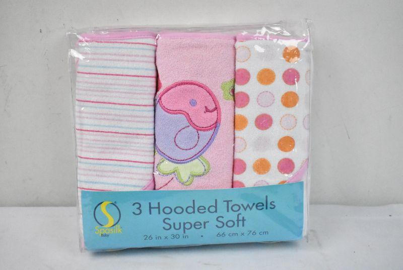 Spasilk 3 pack Soft Terry Hooded Towel Set, Pink - New